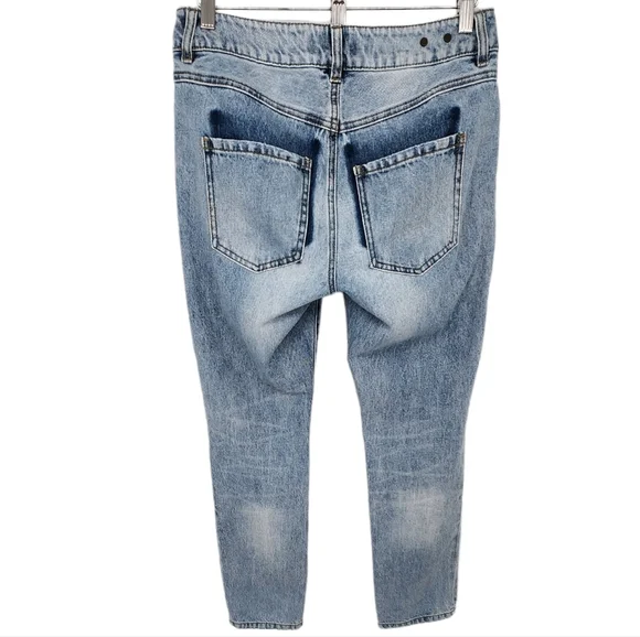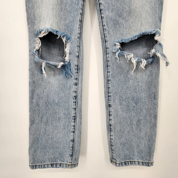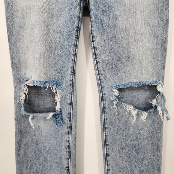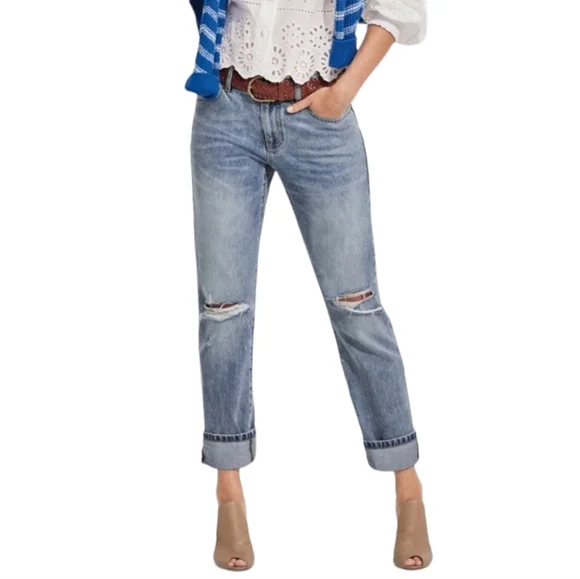 Cabi 100% BF Boyfriend High Rise Relaxed Fit Jean in Sandstorm wash. Light denim wash. High rise. Sits low on the hips. Loose through the thighs. Relaxed fit. Heavy sandblasting. Destruction on the knees. The back pockets have been removed after stonewashing and repositioned for a vintage vibe. Dress up these distressed jeans with heels and a blouse, or keep things casual with a tee and slides. 5 pockets. Zip fly with button closure. Size 0, these run large due to the style. 100% Cotton. In excellent, pre-owned condition. No flaws.Rise: 8.5"Waist: 14"Inseam: 28.5"Leg opening: 6.5"*Measurements are approximate*O2594