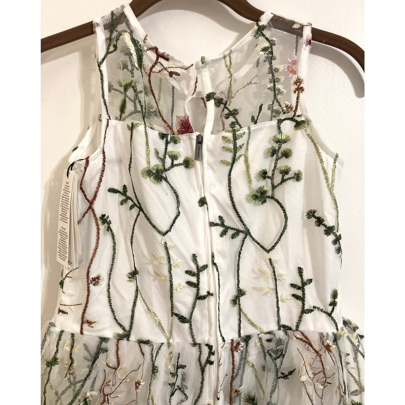Calvin Klein Sleeveless Embroidered Mesh Overlay Girls' Dress