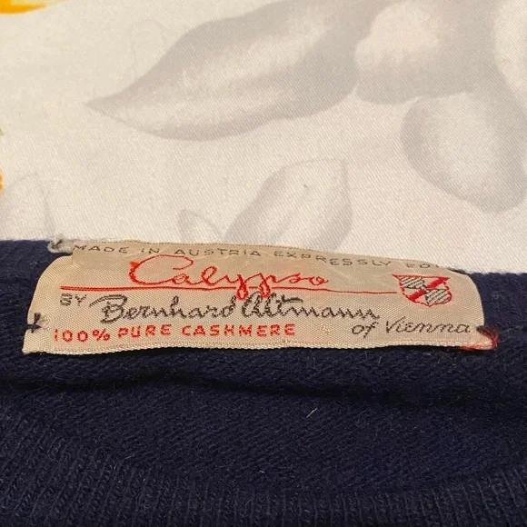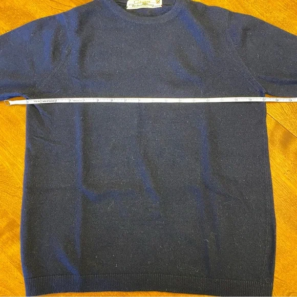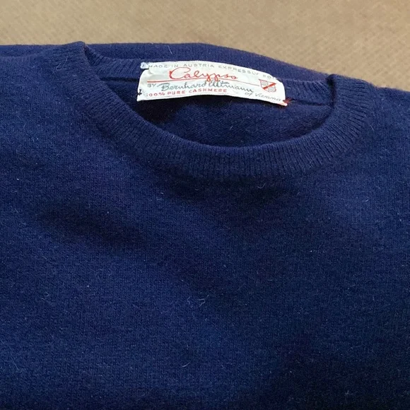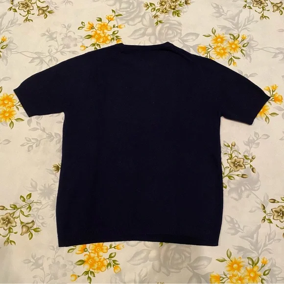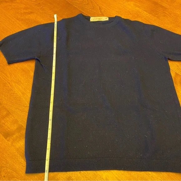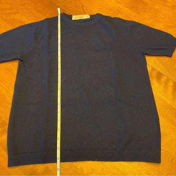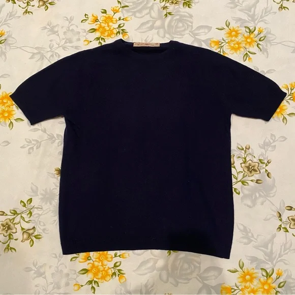 Calypso by Bernhard Altmann Navy Vintage 100% Cashmere Short Sleeve SweaterSize: S (approximate measurements are shown and model is normally a size 2 for reference)This luxuriously smooth and stylish sweater will keep you cozy and comfortable all winter long. Layer it how you like or wear as is. Beautiful navy color is shown in natural light in last photo to give you an idea of the real colorBundle to saveOpen to offers