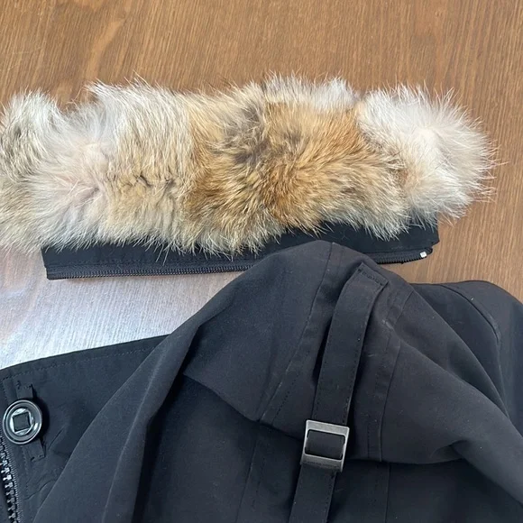 Gently used Great condition Come with the faux fur hood attachment Product InformationThe Montebello Parka was inspired by and named for Quebec's beautiful, rustic and lavish Chateau Montebello. Slim-fi tting with an adjustable waist and smart Military button details, the hip-length Montebello Parka embodies a spirit of rugged luxury.Product FeaturesFleece-lined chin guard for comfortInternal elastic drawcord to adjust the waistLow-hip length for mobilityRight inside security pocket with zipper closureTemperature rating of 15 F / -5 FTwo upper fleece lined pocketsUtility pocket on left sleeve