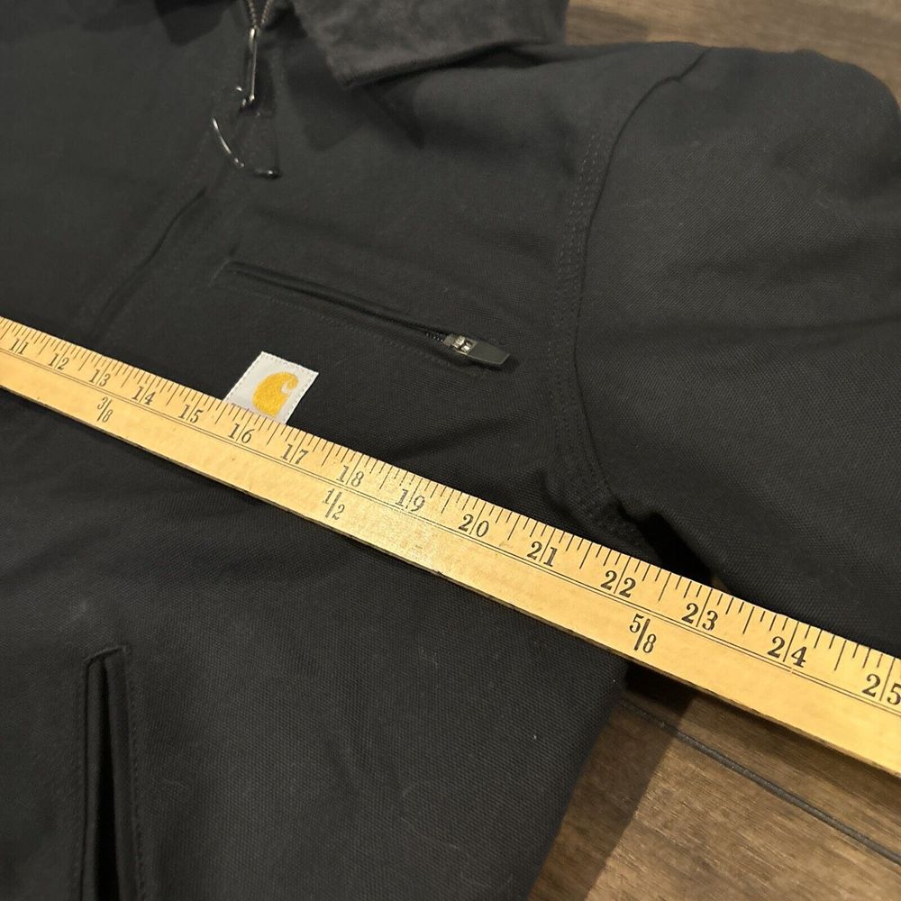This Carhartt Men's Detroit Jacket is the perfect addition to your winter workwear wardrobe. The black jacket is made with durable cotton outer shell material and features a quilted style. The jacket is equipped with a zip, button, and snap closure, making it easy to wear and providing added warmth.