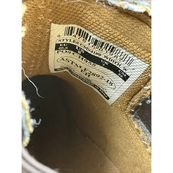 Description: Carhartt Men's US 8W Oil Resistant Safety Toe Boot Romeo CMS410 Waterproof brownCondition: worn once preownedImperfections to note: noneManufacturer Size: 8W Returns: Sorry, returns are not accepted.All items are clearly photographed and accurately listed for you to buy in confidence that what you will receive is exactly as listed here I can only provide size label information and measurements for you to check you are happy to buy my items. I am not responsible for items that simply do not fit.🛒 Ships to you at checkout, just press ‘Buy Now’ on the item. 📦 Sales are final with no returns 🏋🏽♀️Shipping is calculated on the weight and size of the item so is none negotiable. Items are cross posted so the listing may be deleted at any time the item sells elsewhere so to avoid disappointment press ‘buy now’ 🛒 Follow my profile for more great items 👔👚👖👙👗👡👞👟👠🎒👛👜
