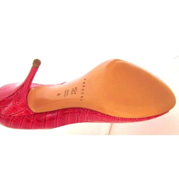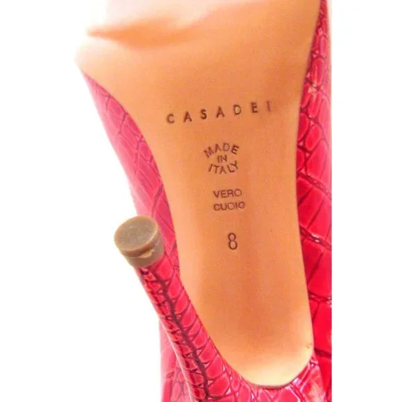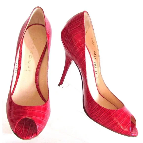NEW DESIGNER CASADEI RED EMBOOSED PATENT LEATHER PEEP TOE STILLETO HEEL PUMPSSIZE: 8.MEDHEEL TO TOE: 10 INCHESBALL OF FOOT: 3 INCHESHEEL HEIGHT: 4 INCHESLEATHER SOLE:MADE IN ITALYTAGS, DESIGNER SHOES, DESIGNER PUMPS, RED PUMPS, PATENT LEATHER SHOES PEEP TOE HIGH HEEL PUMPS OFFICE WORK PARTY EVENING, PREPPYSEE PICTURESNO RETURNSALL SALES ARE FINALNEW WITH OUT BOXALL DESIGNER ITEMS ARE 100% AUTHENTIC HIGH-END MERCHANDISE
