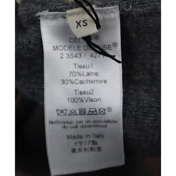This stunning Celine grey mink and cashmere sweater is a luxury addition to any wardrobe. Made with a unique blend of materials, it offers superior warmth and comfort. Stay cozy and stylish with this high-quality sweater.Authenticity GuaranteedColor: GreySize: 2Fabric: Cashmere, wool minkMeasurements: Taken while lying flat then doubled- Bust (11" from top): 34"- Waist (16" from top): 33"- Sleeve Length: 25.5"- Total Length: 23.5"Condition: Excellent (no visible signs of wear)27398-97B27DBEasy Return Policy. Questions? Email us at [email protected] for more information.