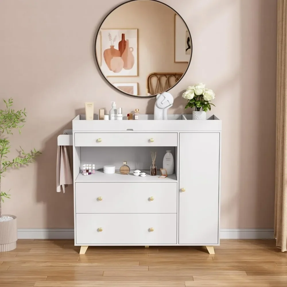 Changing Table Modern Dresser with Wide Table Top, 3 Drawers, White Drawer Dresser