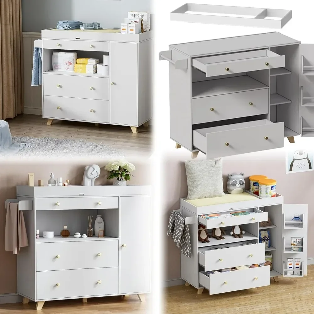 Clever & Modern Design: Our changing table can be used to change diapers, massage and more. Three roomy drawers provide plenty of room for all item, blankets and more. Open shelf are convenient to store small everyday items. One clever design shelves cabinet Keep all items clean and tidy from dust. It can also be used as a dresser.