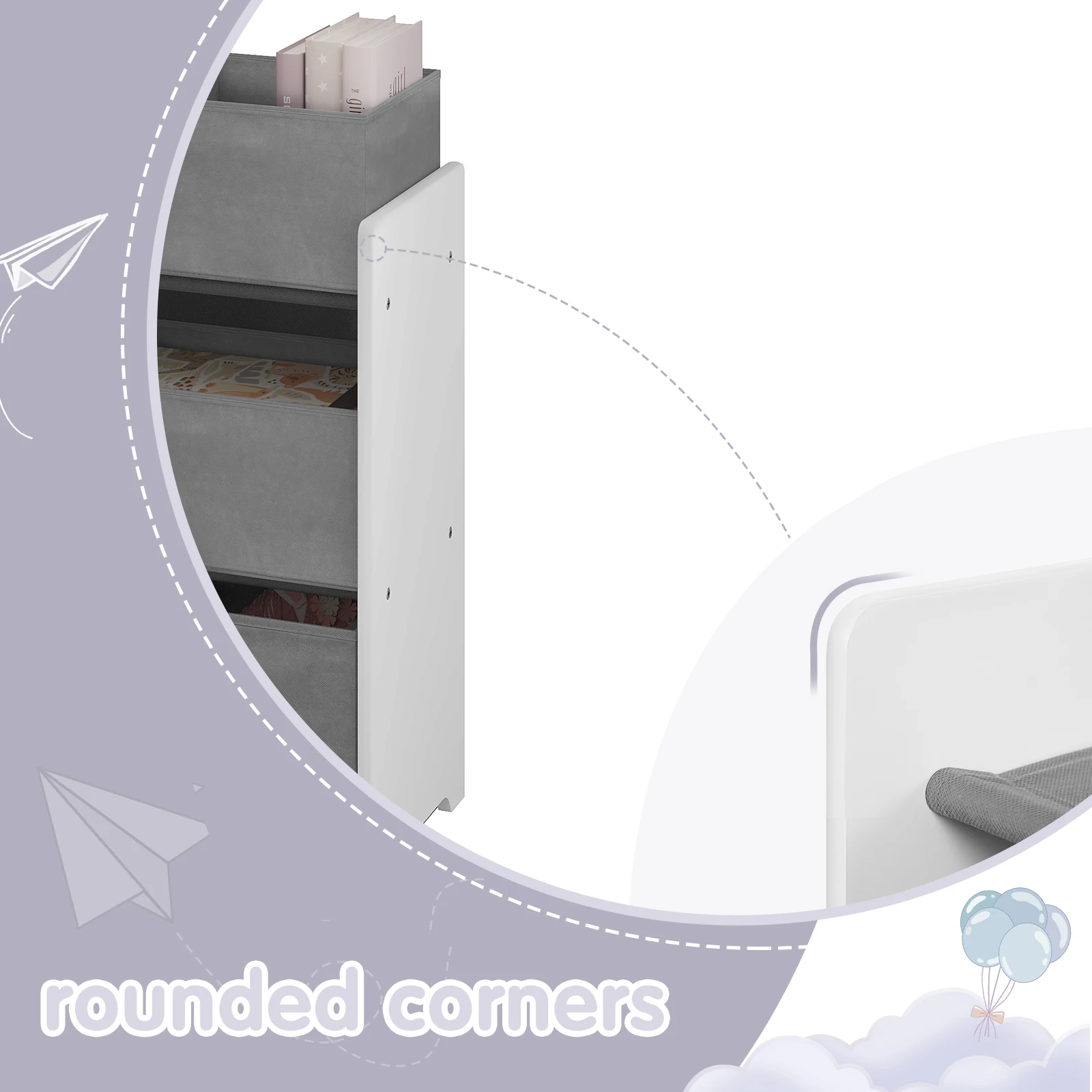 • Safe Use The MDF panels with environmentally friendly clear varnish are smooth and easy to clean. The corners are rounded to avoid accidental bumps. This makes the children's room shelf safe to use and last for a long time