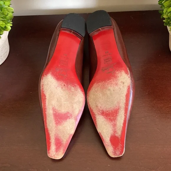 CHRISTIAN LOUBOUTIN ICONIC RED-SOLED POINTED TOE LOW HEEL PUMPS SIZE 41 🇮🇹 Made in Italy 🇮🇹🌟EUC🌟Gently used😊(normal wear on soles but otherwise in excellent condition)🛍️Please check out my other LUXURY SHOES🛍️📦Bundle for discounted pricing & one shipping fee📦NEW to ? sign up using invite code: DANCINGGABY to get a $10 Posh Shopping Credit!!!