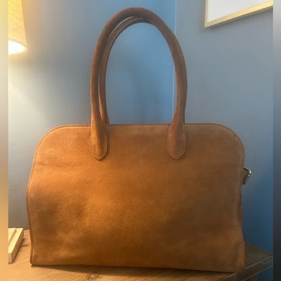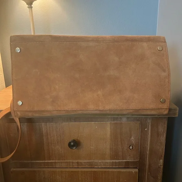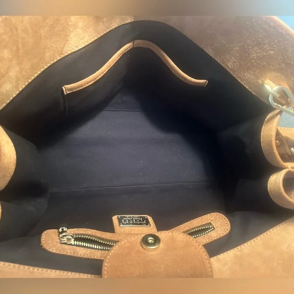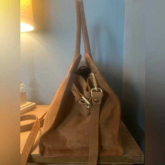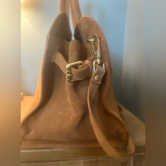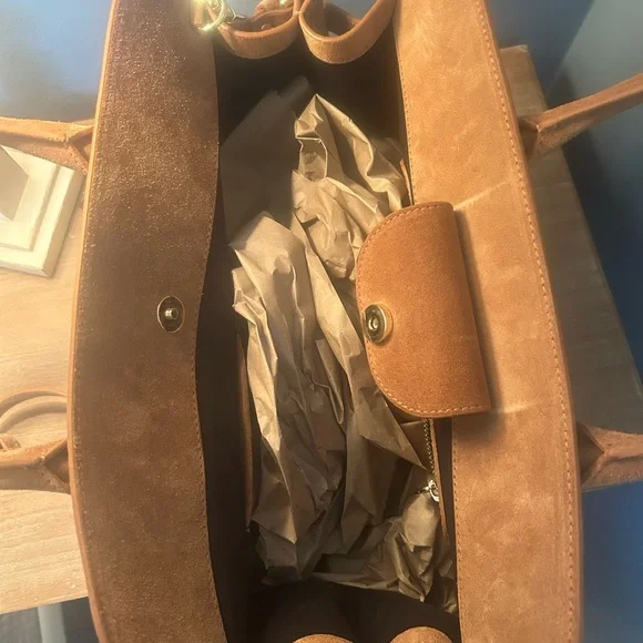 Viral TikTok bagCamel color 100% genuine leather Made in ItalyMagnetic snap closureGold hardware Detachable, adjustable shoulder strap Zipper compartment on inside and 2-sided pocket also EXCELLENT CONDITION!!Bag dimensions 14 7/8” L x 8” W x 11 1/2” H Handles are 8” tallBag is slouchy by design and may show marks as that’s the nature of the material. No flaws seen.
