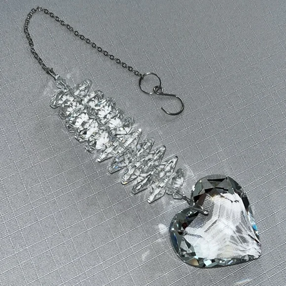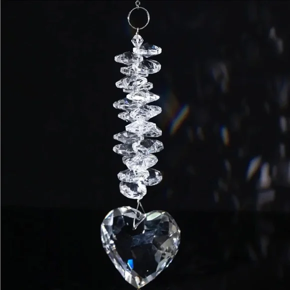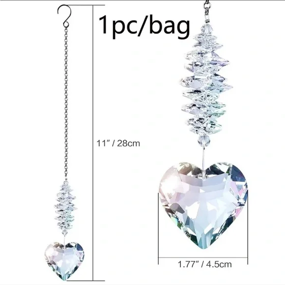 Clear Glass Heart Crystal Ball Prism Pendant, Window Light Catcher, Indoor and Outdoor Garden DecorationWith its clear glass heart design and crystal prism, this pendant captures light beautifully, creating a mesmerizing display. Ideal for adding a touch of magic to indoor and outdoor spaces alike.The glass heart pendant's color variation is a delightful feature, capturing the essence of sunlight and casting a spectrum of hues.New in bagPrice is firm