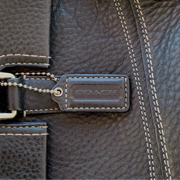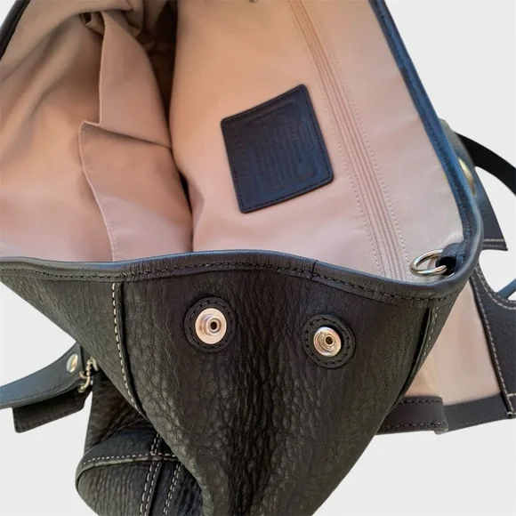 ~ Excellent, Rarely Worn Condition ~~ Smoke-Free, Dog-Friendly Home ~COACH Hamilton Black Pebbled Leather Satchel Shoulder PurseFeatures:- Style No. K0893-F13091- Exterior:• Thick, Soft Black Pebbled Leather• Front Silver Tone Turn Lock Closure• Silver Tone Hardware• Two Smooth Handles/ShoulderStraps• Side Buttons to Expand Opening• 4 Metal Feet• 1 Hang Tag- Interior:• Beige Fabric Lining• COACH Credo Patch• 2 Slip Pockets• 1 Zippered PocketDisclosures:- No dust bag.- No outer pockets.- Minor turn lock wear.• Please view photos closely.Approximate Measurements and Weight:- 13" Long- 4” Wide- 9-1/2” High- 3/4” Wide Handles- 7-1/2" Handle Drop- 1 Lb., 14 Oz.