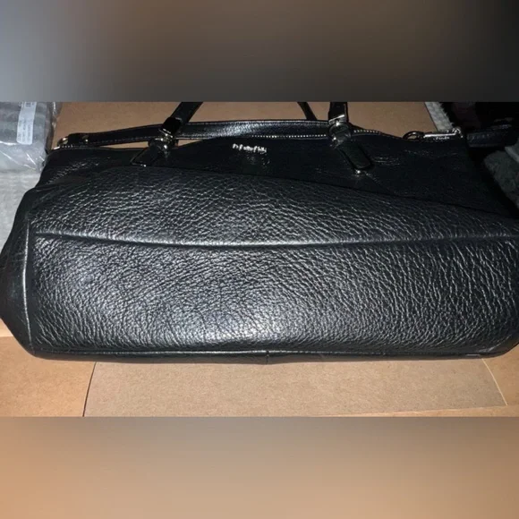 Preowned, good condition. Normal wear; some staining on inside upper part by zipper, can likely be cleaned off…. looks like makeup. Outside; nothing to report. Please see pics for best reference!Thanks for looking 👀 COACH-Madison Small KelseyProduct Details:Black Pebble LeatherSilver HardwareInside zip, cell phone and multifunction pocketsZip-top closure, fabric liningHandles with 5" dropLonger strap with 21 1/2" drop for shoulder wear13" (L) x 9" (H) x 3 1/4" (W)