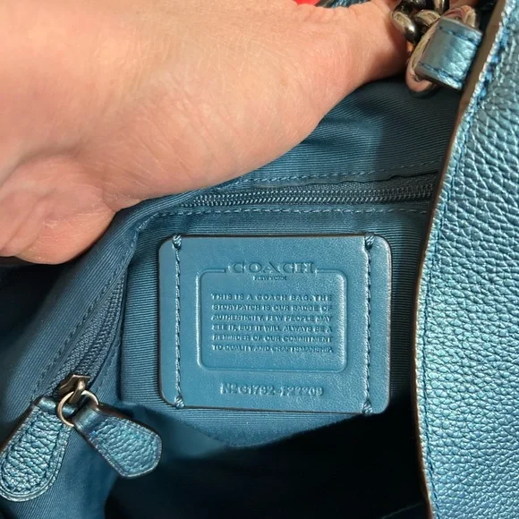 This Coach shoulder bag in a stunning blue hue is crafted from premium leather, offering a luxurious feel and timeless appeal. The gun metal hardware adds a touch of elegance, making it a versatile accessory for both casual and formal occasions. Its spacious design ensures practicality without compromising on style.