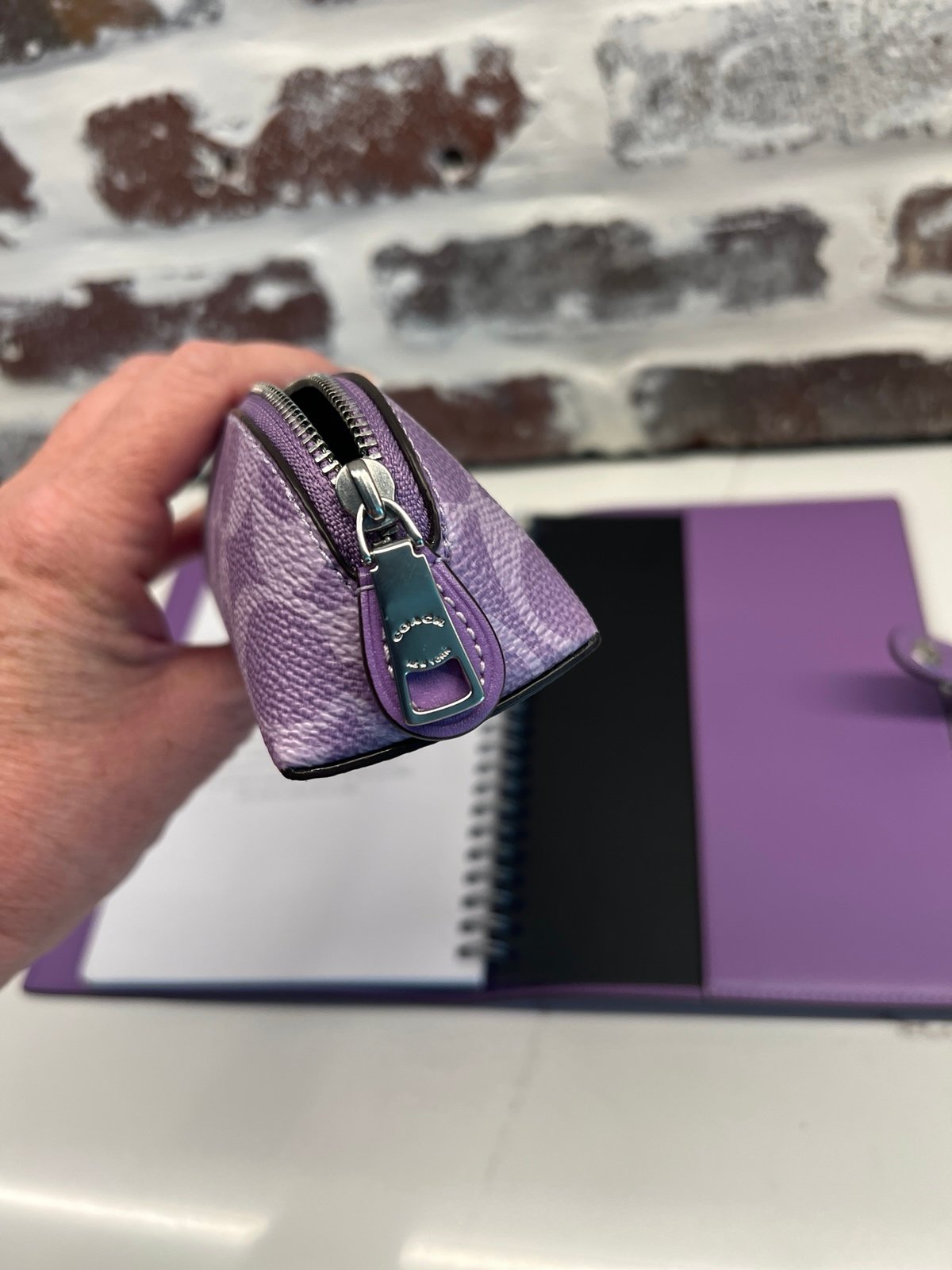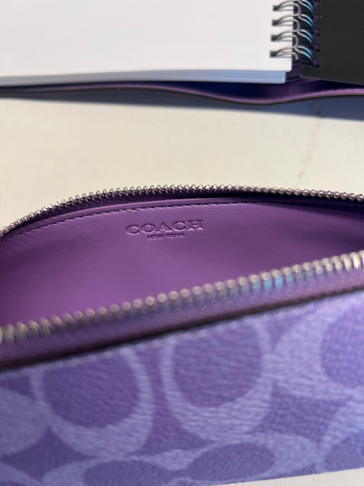 Brand new with tags a matching Coach notebook and pencil case in signature Iris light purple color