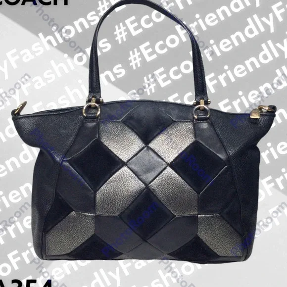 Coach PATCHWORK PRAIRIE SATCHEL METALLIC LEATHER SUEDE.Quilted in soft classic black leather with a bit of a gunmetal sheen, this simple, gracefully curved shape distills the satchel to its purest form. Quilted leather.Inside zip, cell phone and multifunction pockets.Zip-top closure, fabric lining.Handles with 5" drop.Long strap with 21" drop for shoulder or crossbody wear.Measurements: 13.5" (L) x 9" (H) x 4" (W).Geometric pattern.Retails $398.Exclusive style.Condition: In Great Pre-Owned Condition. No Original Box, Minor scuffs on corners due to minor wear.Hardware has hairline scratches and minor discoloration.This is a preworn item and as such will not be in perfect condition, will have some imperfections so please manage your expectations.We want you to have a good experience. Please examine and study all pictures carefully before purchasing!!Thank You For Shopping!
