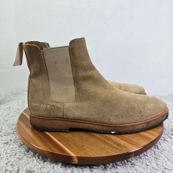 #A3025Common Projects Tan Suede Casual Lifestyle Office Daily Chelsea Bootssize 9 / UK 8 / EU 42Standard WidthNo original boxNormal wearScuff marks visible on the upper and midsoleDiscoloration/stain visible on the upper and midsole Note:Please check pictures for details and flaws as they are part of descriptionPlease compare measurements with your favorite similar item to ensure the best fitAll sales are finalPair in photos is the exact pair you are purchasingSold as isNo returns are acceptedCarefully packaged and boxedWill ship within 1 business day *Late Fri, Sat, and Sun orders will be shipped out on Mon *Depending on situation late Fri and early Sat orders may ship out on Sat before 12pm est.Make sure to follow meI list new inventory daily and offer bundle pricing