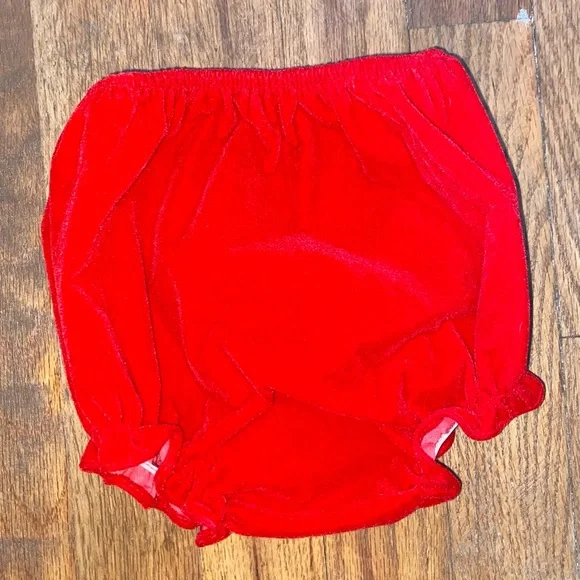 Red and white velvet lacey Christmas dress with bloomers