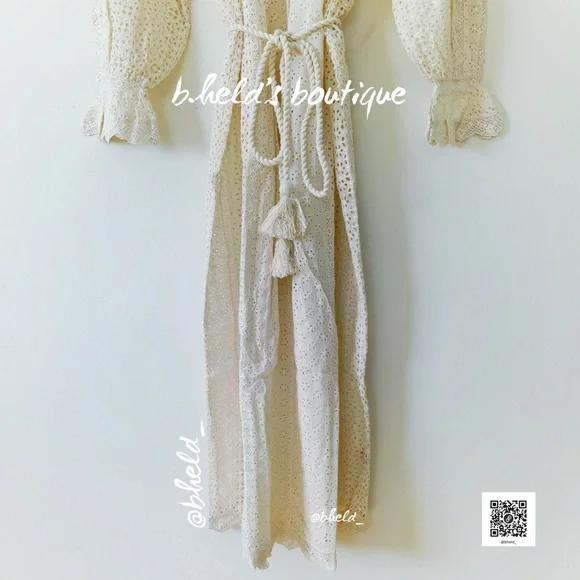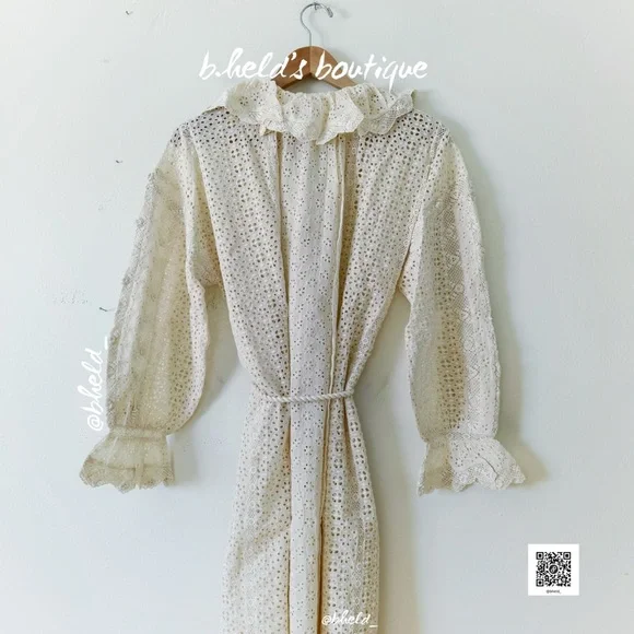 Description:Dôen Persephone Dress in Magnolia (a gorgeous off-white cream color).• From 2023; Discontinued Color.• Adorned with 2 different allover eyelet designs, a playful floral motif & a denser embroidery, the Persephone Dress is a floaty lace-trimmed delight.• Scallop detailing trims the ruffled collar, full-length hem, & generous full-length sleeves.• Cinch at the waist with the included rope belt, or leave loose for maximum ease.• Made of 100% organic cotton eyelet.Size:X-Small (XS)~53" Bust~54" Waist~19.63" Sleeve Length~8.5" Sleeve Opening~52" Length[All Are Approximations.]🤍Please Note: If in between sizes, Dôen recommends sizing down.Condition:Brand New With Tags (NWT). Never Worn! Purchased directly from the Dôen website.Style Tags:Christy Dawn, EcoFriendly, Ethical, Euro Summer, Jenni Kanye, Lauren Manoogian, Slow Fashion, Sustainable, Classic, Effortless, Minimalist, Sophisticated, Timeless, Understated, Feminine, Romantic, Garden Girl Aesthetic, Coastal Cowgirl, Beachside White Dress, Prairie Dress, Sleek & Simple Dress, Free Flowing Dress, Travel, Cruise, Cool in Crochet...Before Asking Questions, Please Note:📷All photos are original.☀️All photos are taken in natural light.🧺All items are stored in a smoke-free, pet-free home.📦All orders will ship within 1-3 business days.🛍Bundle 2+ items to save!🪨Unless bundled, the prices are FIRM.🚫I do not trade.🔖Sold Out.💌 For other questions, please send me a bundle message.