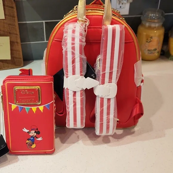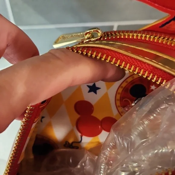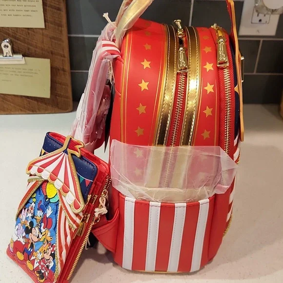 These Disney bags showcase a delightful circus theme with vibrant red and blue colors, featuring beloved characters like Mickey Mouse. Perfect for adding a touch of magic to any outing, these bags come in two sizes, making them versatile for various needs. The playful design and bright colors make them a standout accessory for Disney fans.