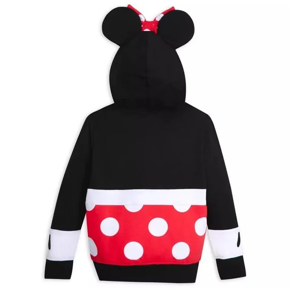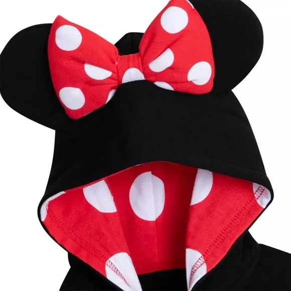 Embrace the magic of Disney with this Minnie Mouse-inspired costume hoodie, featuring a striking black and red color scheme. Perfect for Halloween, this piece captures Minnie's iconic style with its playful polka dot design and charming hood. Ideal for fans looking to add a touch of Disney enchantment to their costume collection.