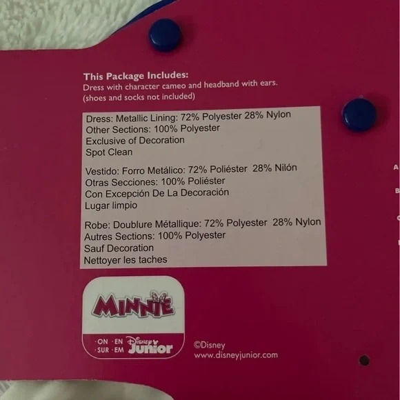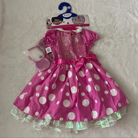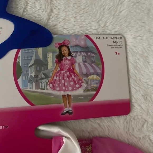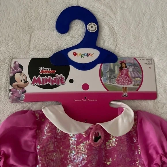 Disney’s Minnie Mouse Deluxe Child Costume, Medium (7-8)Size: Medium (7-8)Color: Pink & WhiteSequin on top of dress as well as a sequin headbandShort SleeveCharacter: Minnie Mouse The package includes: Dress & HeadbandShoes and socks are NOT included!Condition: New with tags✨Price is firm✨~ Thank you for looking ~