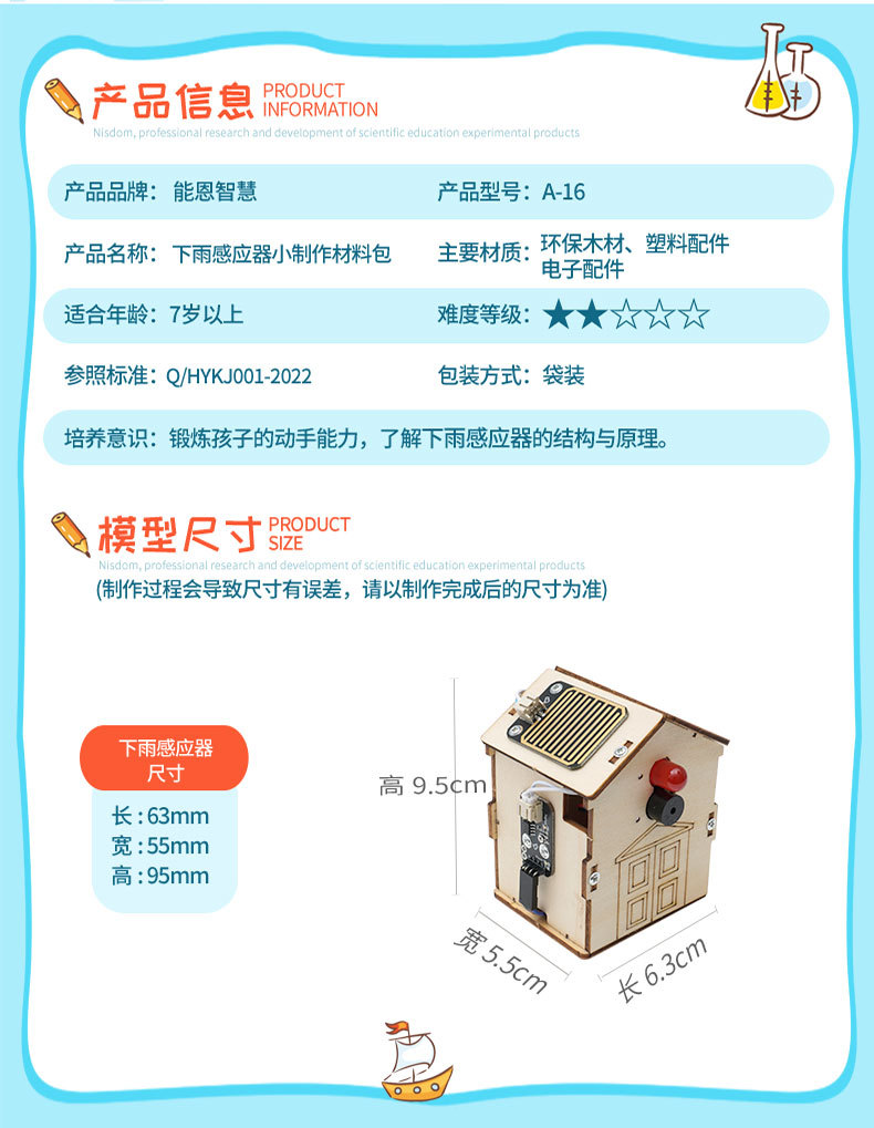 DIY Rain Alarm STEM Toys Technologia Science Experimental Tool Kit Learning Education Wooden Puzzle Games for Kids Teaching Aids