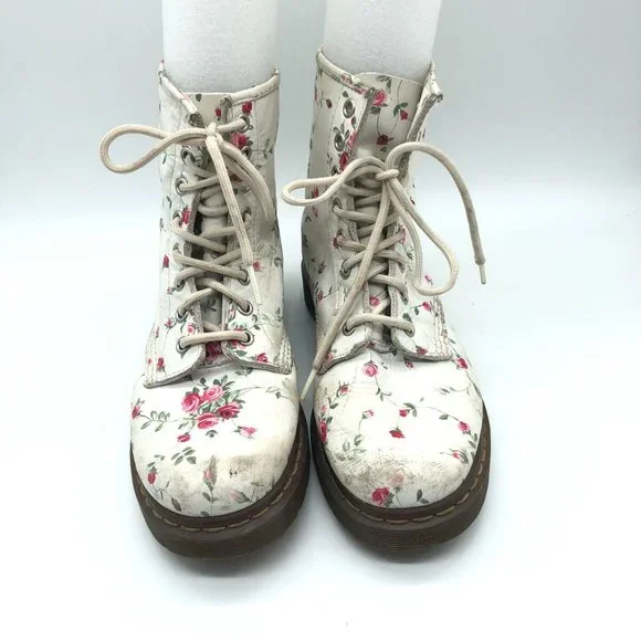 Dr. Martens 1460 Portland Rose Floral Combat Boots White Womens 7Style 11821Shoes have some staining/scuffing/wear. Please see pictures for condition.Comes from a smoke free home.Feel free to ask any questions you may have. Thanks for looking!Size: Womens 7Condition: Pre-Owned GoodShoes have some staining/scuffing/wear. Please see pictures for condition.