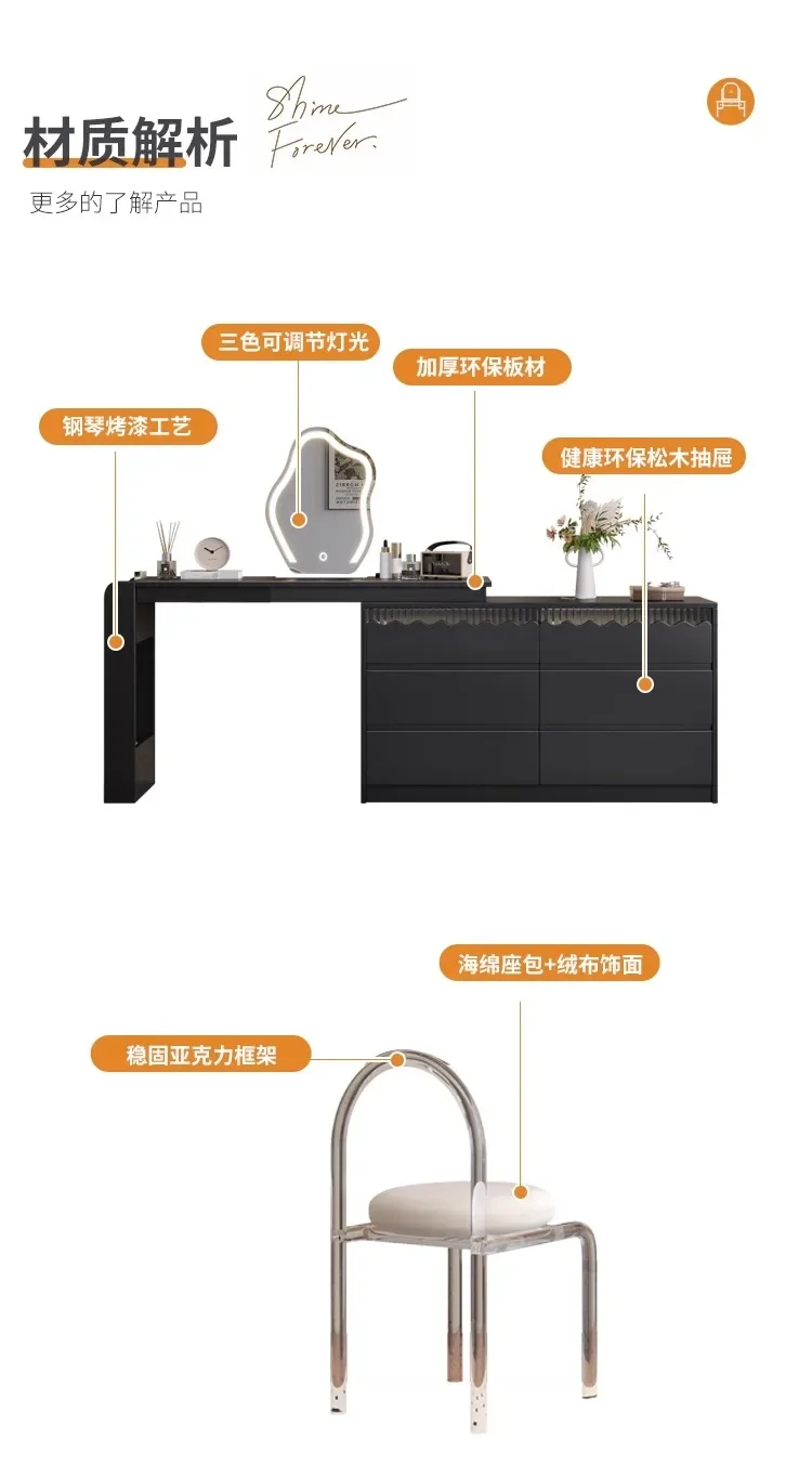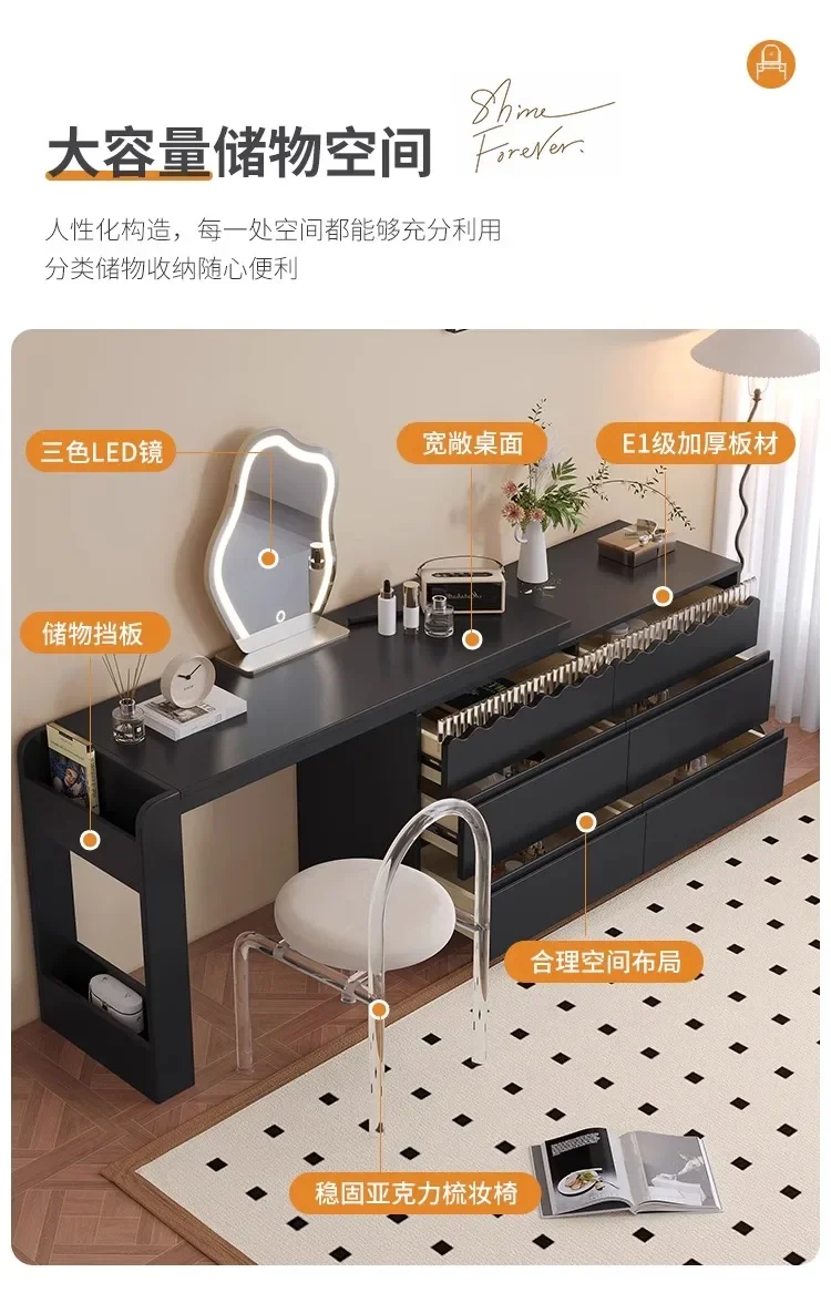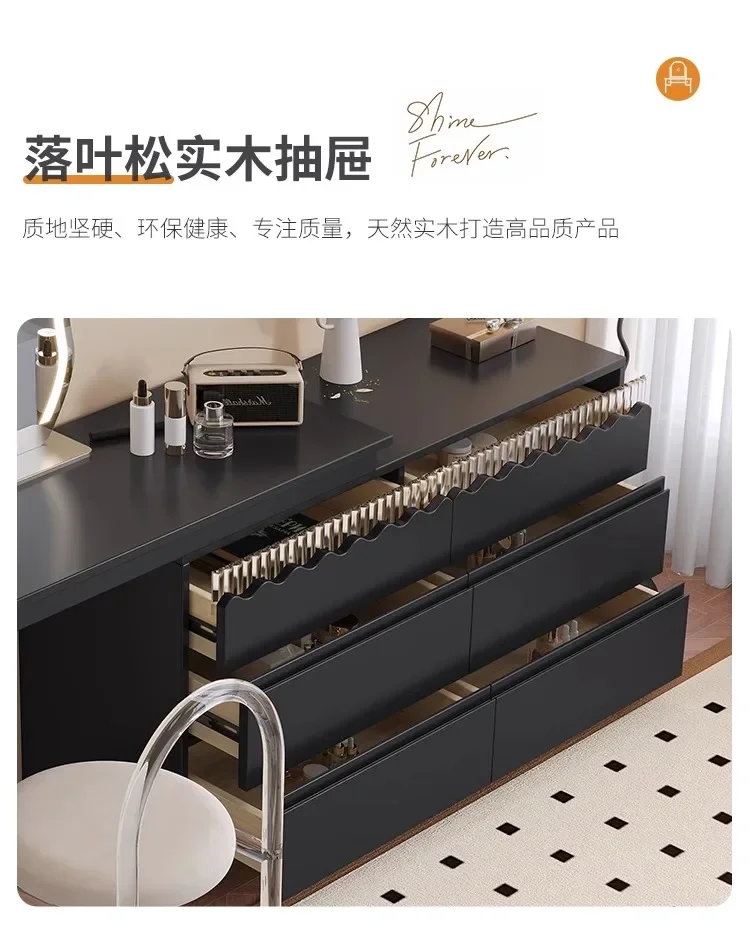 Dressers Makeup Vanities Drawer Set Mirror Lamp Black Computers Desk Dressing Table Holder Tricks Girls Luxury Home Furniture