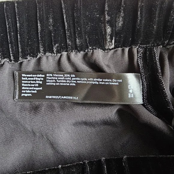 NEWAn elegant wide-leg pant that drapes beautifully. Soft and shimmering in our washable velvet with a touch of silk.Slim through the hips, wider through the leg. Fits the body with ease.Drapey and lustrous, a viscose silk velvet that's washed for relaxed elegance.it's responsibly dyedMachine wash cold.Made in China. 80% Viscose/20% Silk.