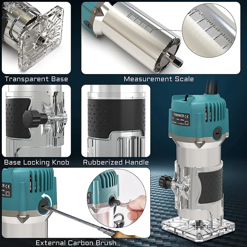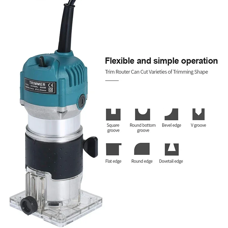 9. Flexible and simple operation, can cut a variety of trimming shape like square groove, round bottom groove, V groove, round edge, bevel edge, etc. to meet your different requirement.