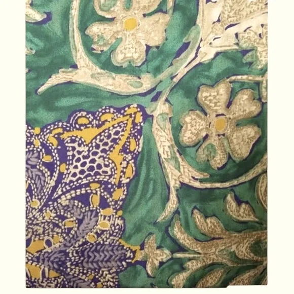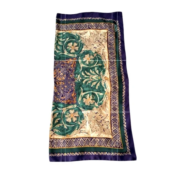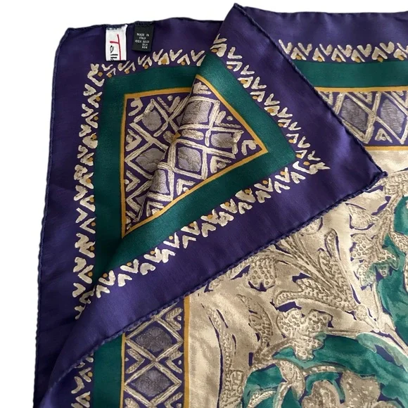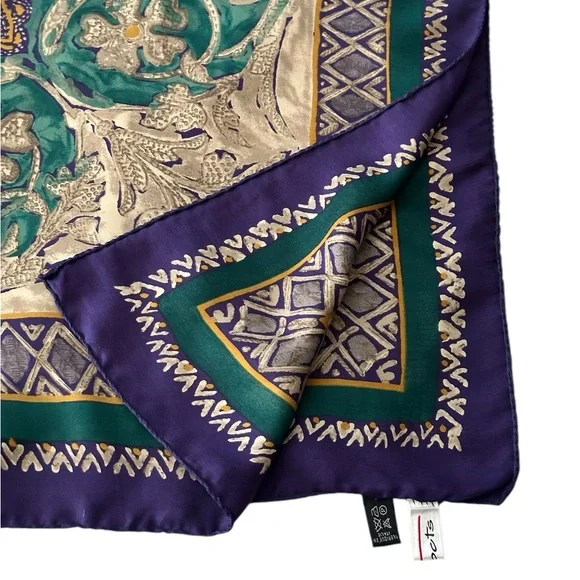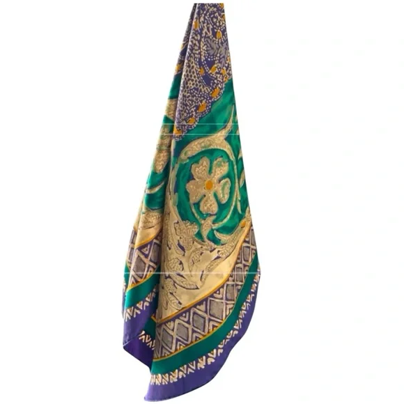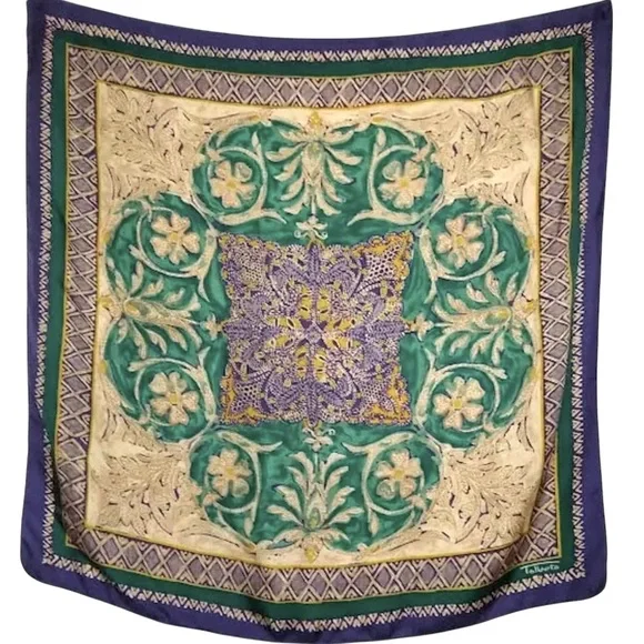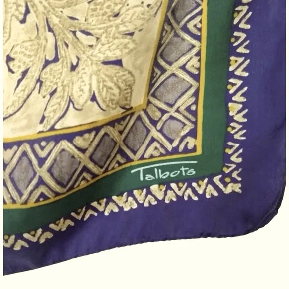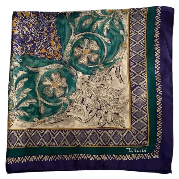 This Talbots multi colored Square 100% Silk Scarf is stunning. The dramatic design and array of colorings allows versatility making it a great piece for layering to achieve an effortlessly classic look. Its large size allows many styling options. The color combination captures a cheerful yet powerful stimulating effect.This is a must have, multi seasonal staple piece. Gently PreLoved*Brand: Talbots*Approx Size: 86cm or 33 1/2insquared*Fiber Content: 100% Silk(Please note: color may vary due to lighting &/or monitors)