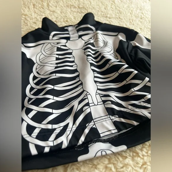 Downsizing my kiddos dancewear collection. Many pieces were worn for pictures or videos only so in excellent condition! All washed on delicate with mild detergent and hung to dry.This set is by Eleve Dancewear, top is the Molly Crop bottom is the Lana Tight, both in the X-Ray RTW collection. Some very light markings in the “bones” but otherwise looks brand new! Top has fully lined front.