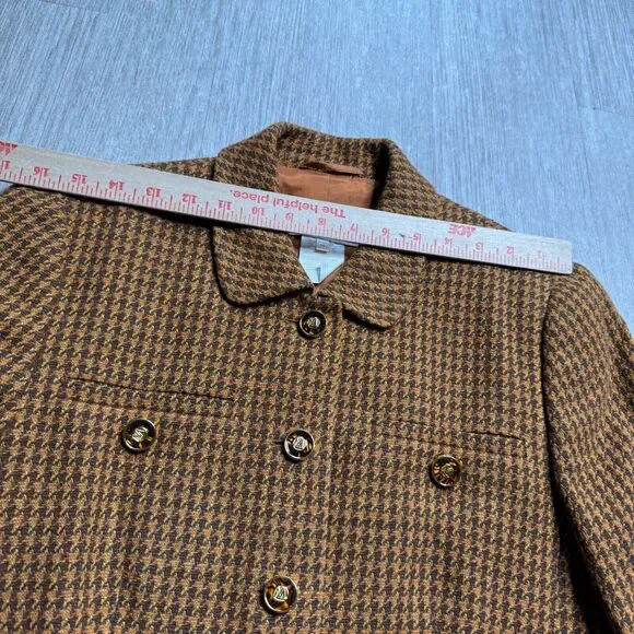 The ESCADA Margaretha Ley Blazer in Silk Wool Cashmere is a luxurious and stylish addition to any wardrobe. This mid-length blazer features a houndstooth pattern in a rich mustard brown color, adding a touch of sophistication to any outfit. With a button closure and lightweight design, this versatile piece is perfect for both formal and casual occasions, making it a must-have for the modern woman on the go.Beautiful condition!