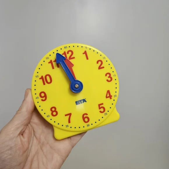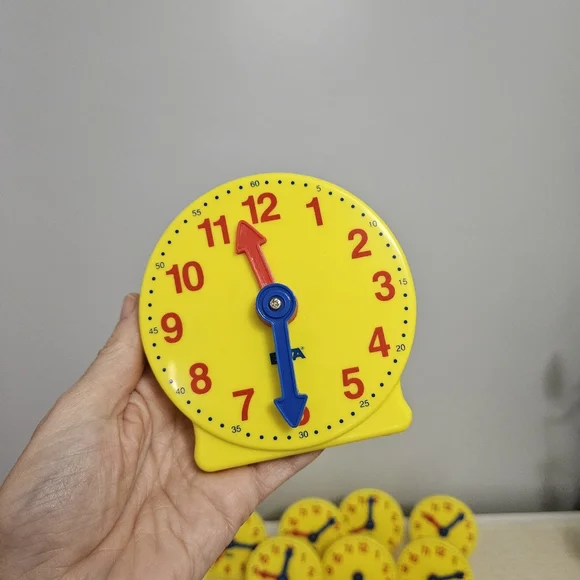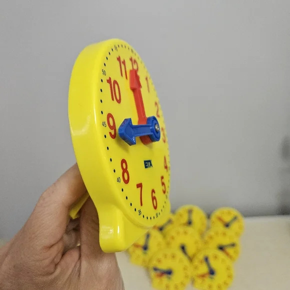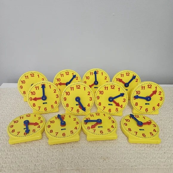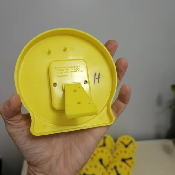 ETA Learning Resources Geared Mini Clock 4" Teaching Homeschool Telling TimeLike NewThey have the letter "H" written on the back. I've not tried to get the sharpie off, it might come off with handsantizer. These were only labeled and never used. I have 2 sets of 12 available.Each sold separately. ETA Learning Resources Geared Mini Clock 4"Teaching Telling Time Homeschool.Perfect for teaching time and telling time with your child. The small piece to make it stand can also be snapped on to the back for storage.