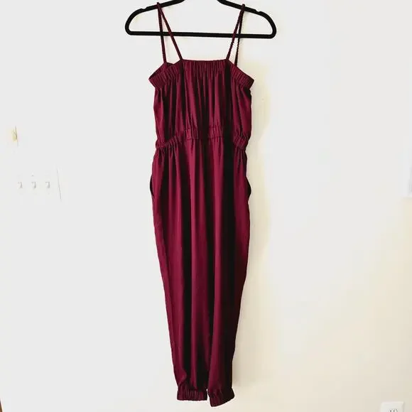 Everlane The Party-Of-One Jumpsuit Oxblood Burgundy.This pull-on style features an elasticized hem on top that gathers at the waistband. The bottoms fit like joggers, with a mid-calf crop. The wrinkle-resistant fabric moves with you, whether you’re chilling at home or busting a move on the dance floor. And oh, did we forget to mention pockets?Elastic square necklineElastic waistElastic at ankleSide pocketsDrapey, lightweight triacetate100% TriacetateExcellent condition.Approximate measurements laying flat.▪Women's Size S▪Pit to pit 15"▪Shoulder to hem 53"▪Waist 14"Tags: Career, work, event, party, brunch, weekend, night out, date, wedding, fall, springShips next business day.Feel free to ask questions!Motivated seller - open to all offers!