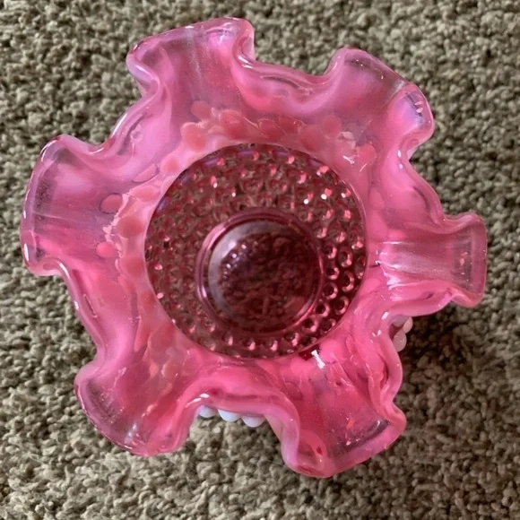 Fenton Cranberry Hobnail Round Vase – 4 3/4” – Vintage Art GlassThis charming Fenton Cranberry Hobnail vase features the classic round bulbous shape with vibrant cranberry glass and the iconic hobnail pattern — a staple among vintage glass collectors.Condition: Good; no chips or cracksHeight: Approximately 4 3/4 inchesColor: Rich cranberryPattern: HobnailBrand: Fenton Art GlassA lovely addition to any vintage glassware or Fenton collection.Thanks for looking, and be sure to check out our other collectible items!