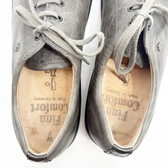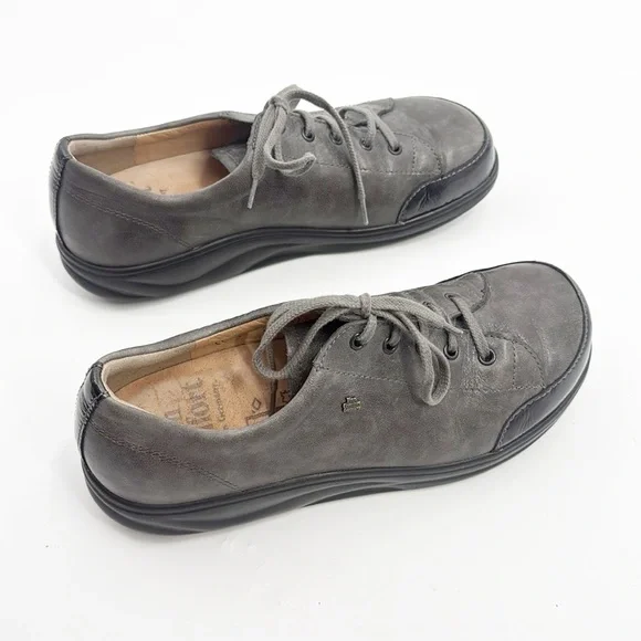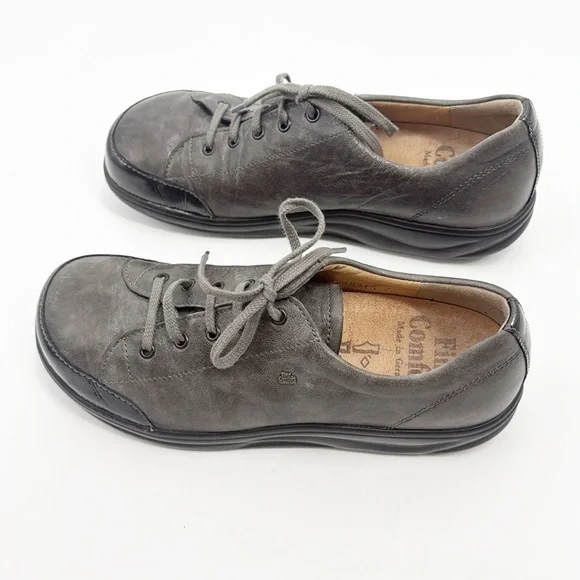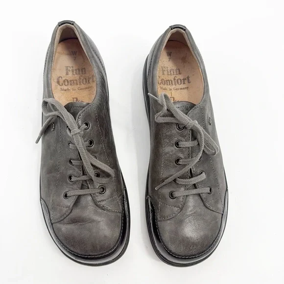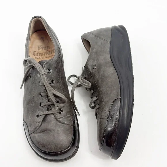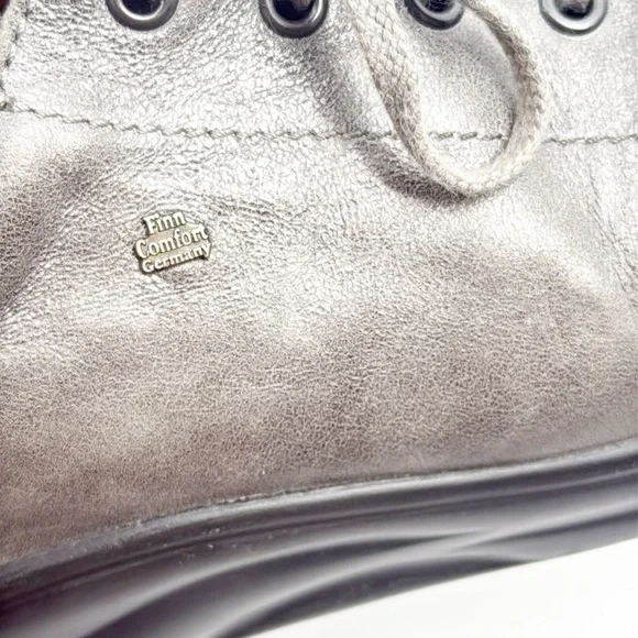 FINN COMFORT Ikebukuro Pewter Metallic Leather Rocker Sole Sneakers size 7 is 9 in excellent preowned condition. Worn 1-2x. Introducing the FINN COMFORT Ikebukuro Pewter Metallic Leather Rocker Sole Sneakers in size 7 US (equivalent to size 9). These stylish sneakers are crafted from high-quality pewter metallic leather, featuring a comfortable rocker sole designed to promote natural walking motion and reduce foot fatigue.Key Features:Brand: FINN COMFORTModel: IkebukuroMaterial: Pewter Metallic LeatherSole: Rocker Sole for ergonomic supportSize: 7 UK 9 USCondition: Excellent pre-owned, worn only 1-2 timesThese sneakers offer superior comfort and durability, perfect for everyday wear or casual outings. Don’t miss out on adding this lightly worn pair to your collection!Sb5.30