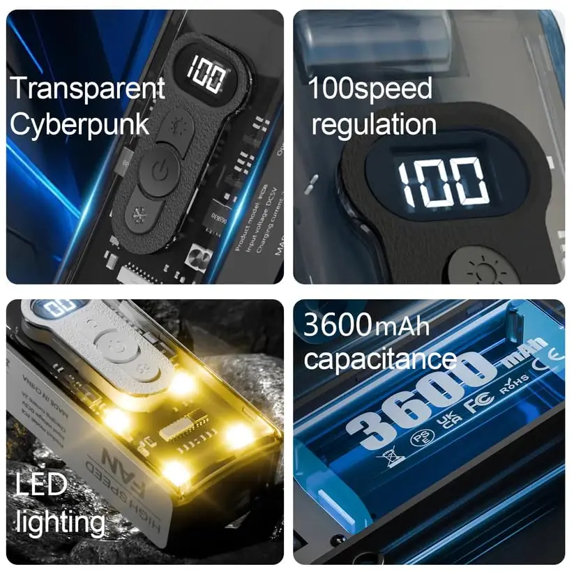 ●Long-Lasting 3600mAh Battery: Enjoy 11 hours of fan operation or 150 minutes of cooling on a single charge.