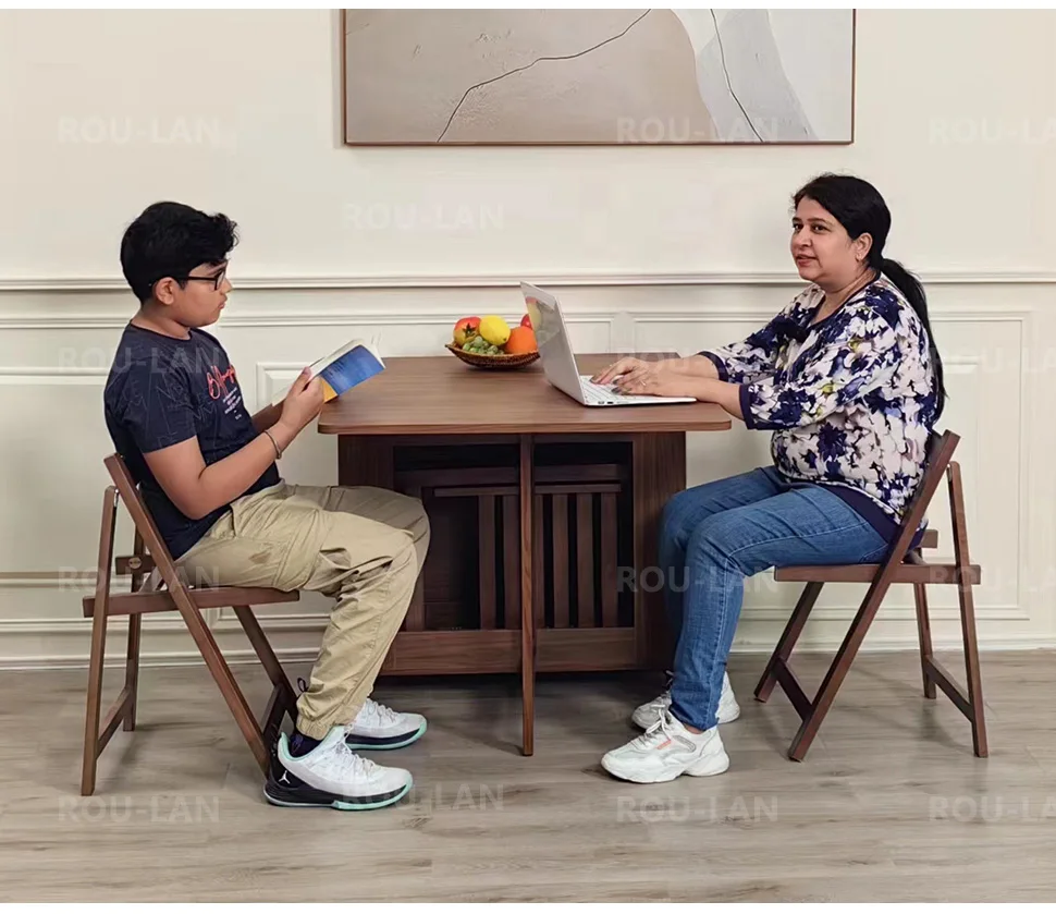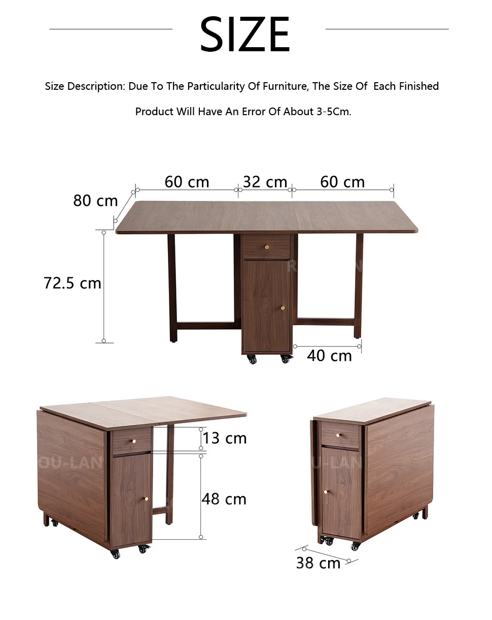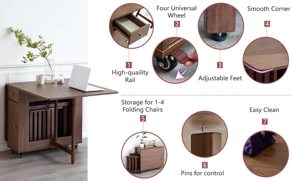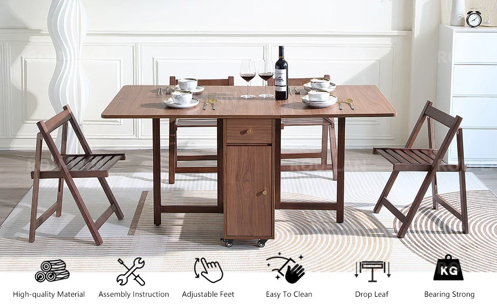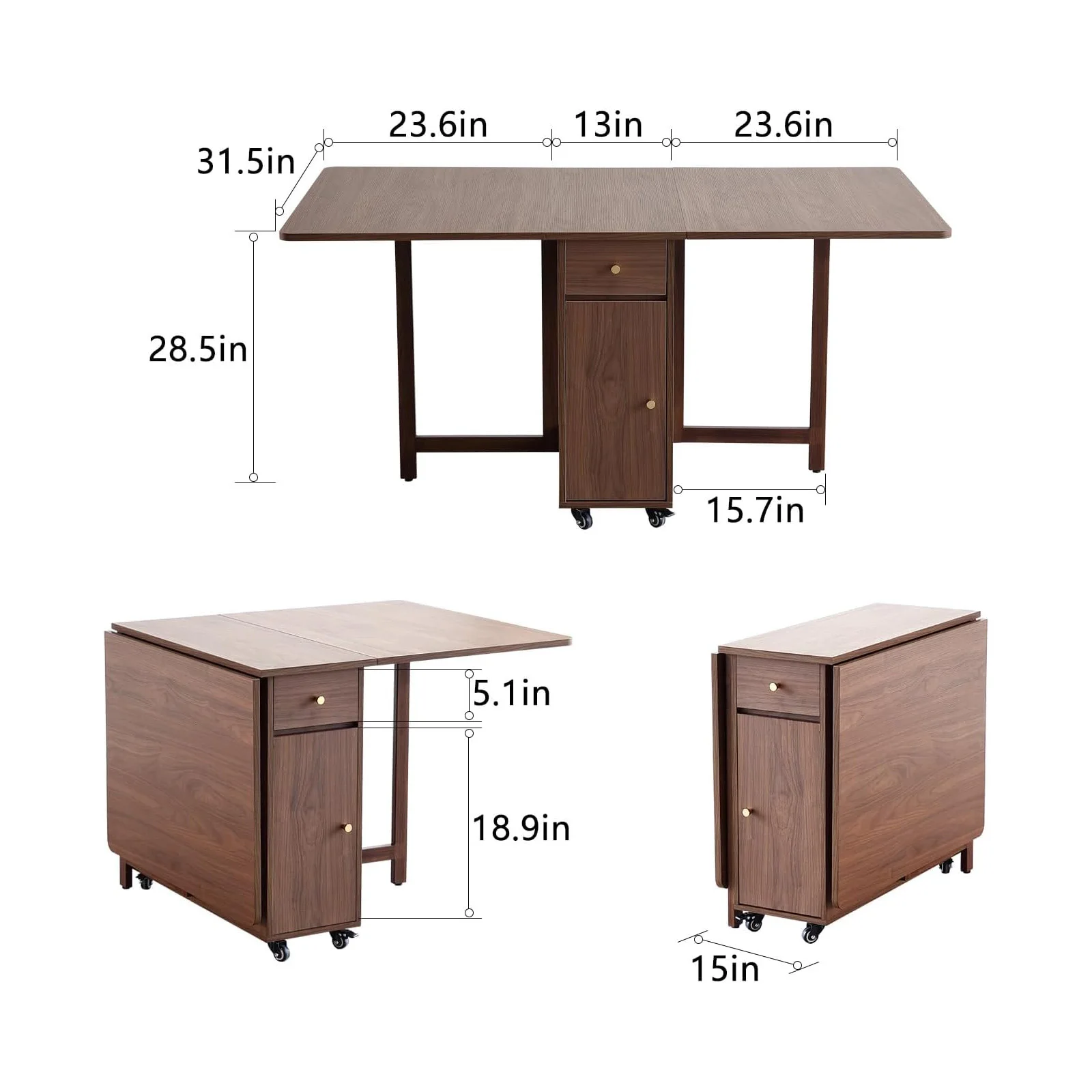 Folding Dining Table with 2 Drawers and 4 Wheels for Living Room,Kitchen, Farmhouse, Space Saving Table