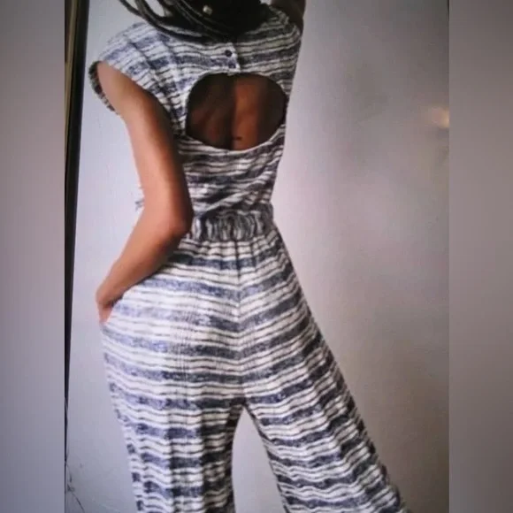 New With Tag! Free People Beach Morning Tides Striped Jumpsuit Size Small Blue White Wide-Leg Excellent new with tag condition. No visible flaws. See all photos! Elevate your style with this chic striped wide-leg jumpsuit. Perfect for any occasion, this jumpsuit offers comfort and elegance. The black and white stripes add a classic touch to your wardrobe.-Size: Small -Material: 77% Cotton, 22% Polyester, 1% Elastane-Colors: Blue, White, Black -Approx. Measurements; Armpit to armpit-- 16”Inseam--27”-RN#68170-Free People Beach-Summer, Spring, Jumpsuit, Stripes, Coastal, Beach, Travel, Vacation, Capsule Wardrobe