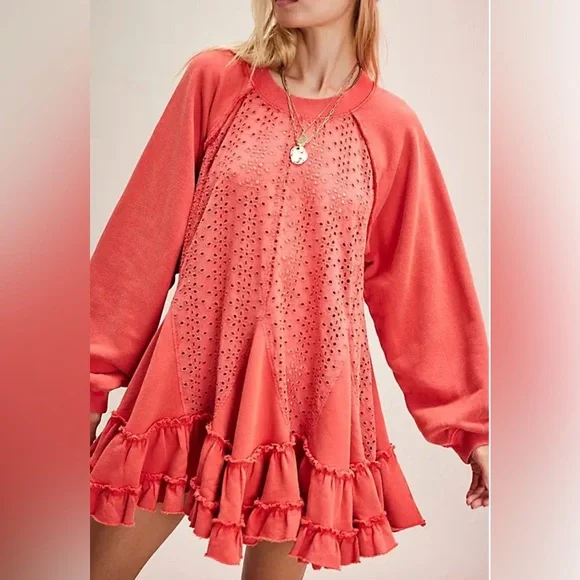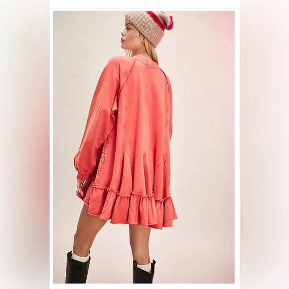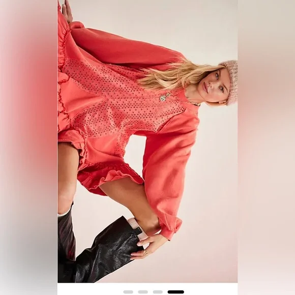 An elevated take on the classic sweatshirt, this pullover is featured in a soft cotton fabrication and tunic-inspired length with eyelet detailing and a ruffled hem.Fit: Shapeless, oversized fit; tunic-length styleFeatures: Soft cotton fabrication, scoop-neckline, raglan-cut sleeves with cuffs, ribbed hems, eyelet detailing at body, ruffled hem, godet inserts for added dimensionWhy We ❤ It: This sweatshirt adds a femme touch to any look.Size + FitMeasurements for size SmallBust: 44 inLength: 32.5 inContentsCareMachine Wash ColdContents100% CottonOriginImport