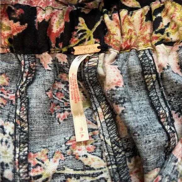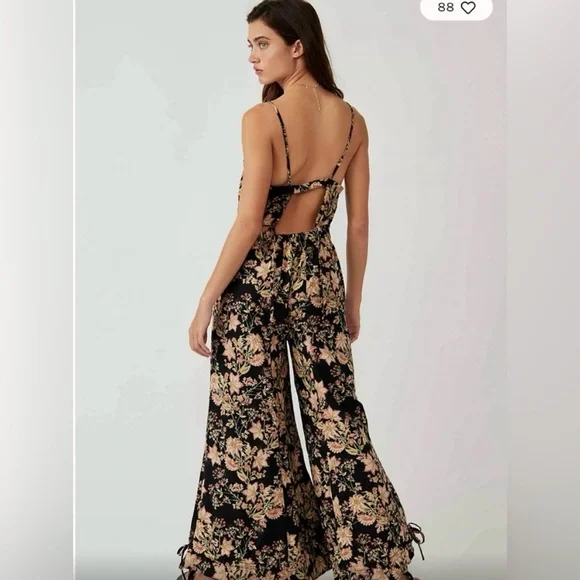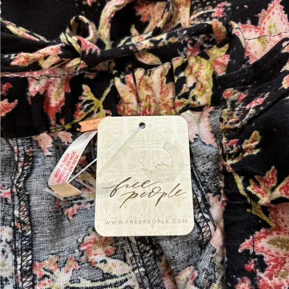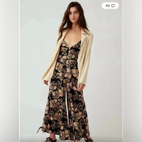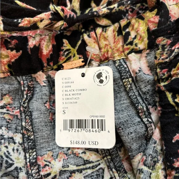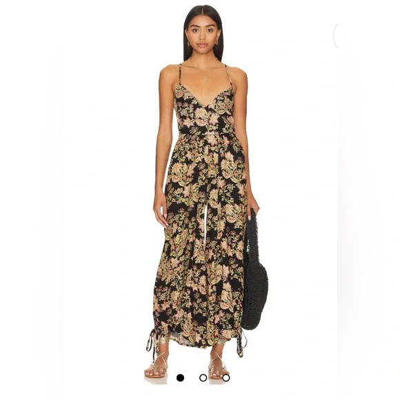 Free People Standout Jumpsuit in Black Combo In Black Combo. Size Small. New with tags. Elastic waist and tie closureLightweight linen fabric Drawstring hem with tie closureWide legs with harem inspired silhouette Machine wash47% rayon, 39% cotton, 14% linenChest measurement laying approximately flat 16.5 inches Inseam approximately 26.75 inches 00721