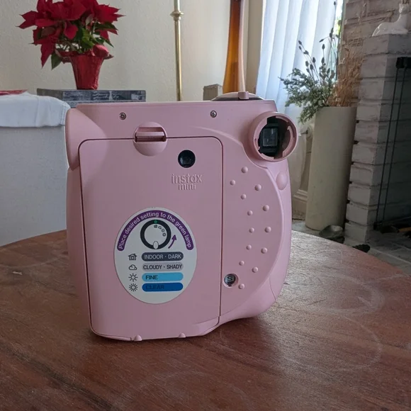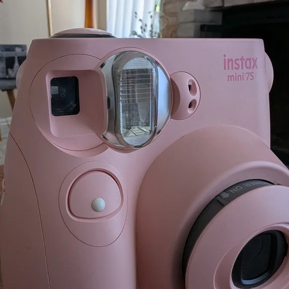 Fujifilm Instax Mini 7+ CameraThe Fujifilm Instax Mini 7+ is a compact, stylish, and colorful instant camera that features exposure control adjustment and easy point-and-shoot features. It has a high-quality FUJINON lens and uses Fujifilm Instax Mini Film to produce superior images.Great condition, except the view finder piece on the back broke off100% functional