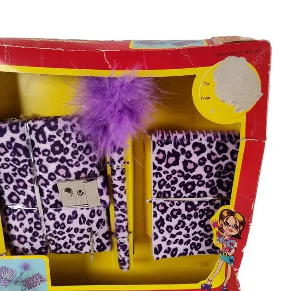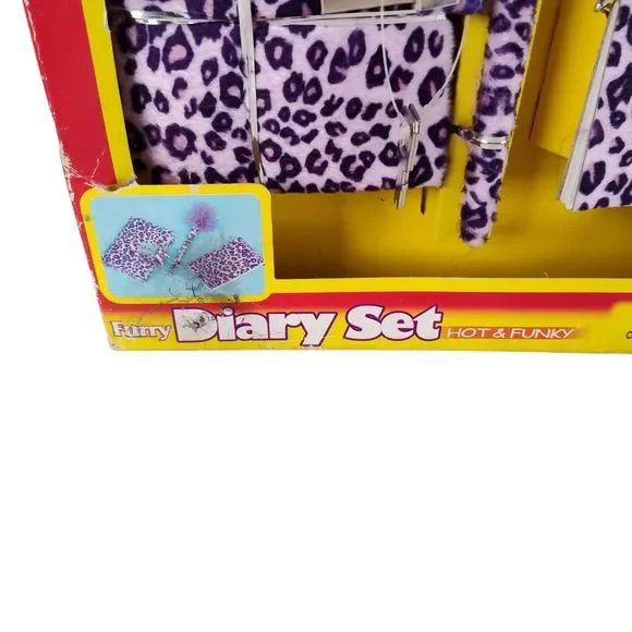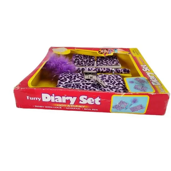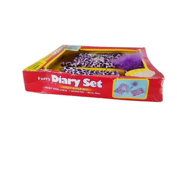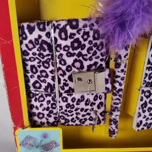 As-if! Vintage 90's diary set in purple animal print faux fur. Comes with a locked diary, pen with feather topper and notepad. Diary is about 5.25" tall by 4" wide. Unused with extremely beat up packaging, there is an extremely good chance the in in the pen is dried up. If you're also looking for an empire waist a-line dress to help scheme with your best friend to set up your heinous teacher for love to improve your grade in debate, well I've got those too!