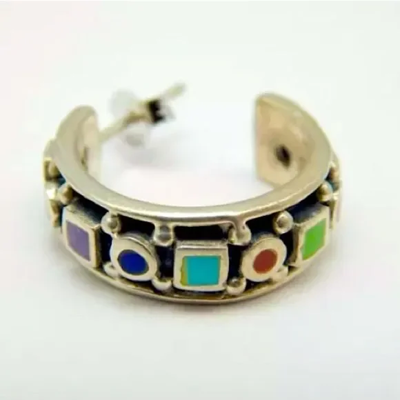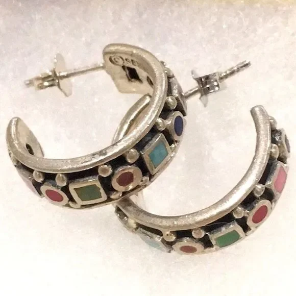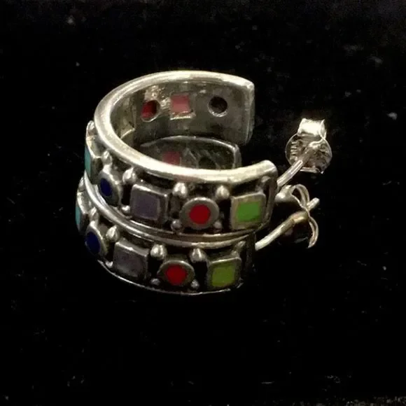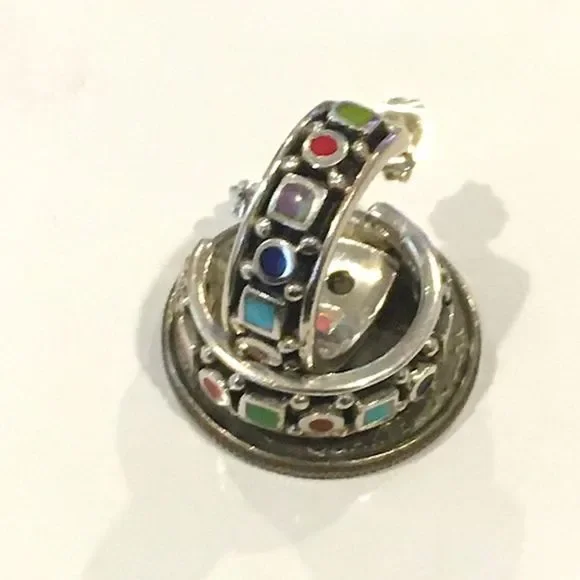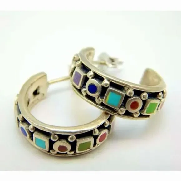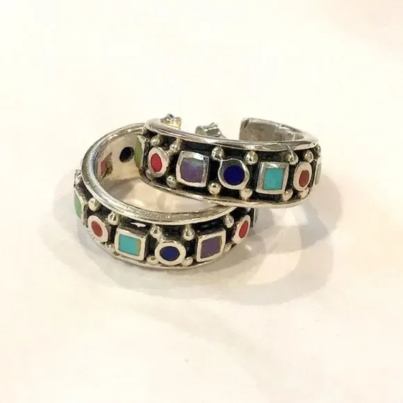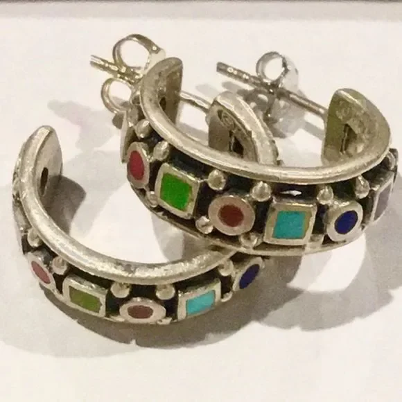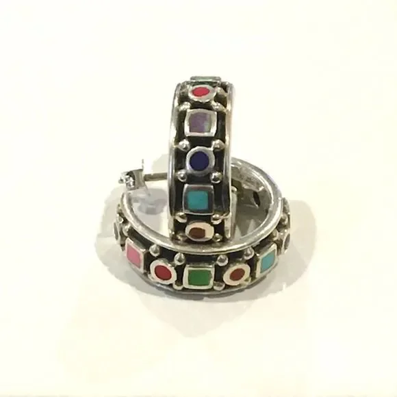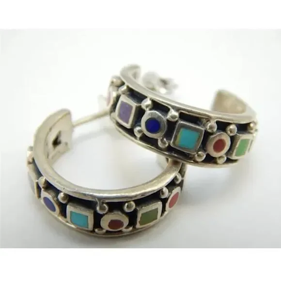 Sterling Silver Multi-Gem Hoop EarringsLapis LazuliCoralTurquoise SIGNED: SESterling Silver: 925Multi Gem: 2.5 TCWWidth: 20.3 MMHeight: 20.3 MMWeight: 8 GRAMSColor May Vary Based on Lightning, Shadows, Display, Monitor Settings Ask Questions and/or Request Additional Photos, Information as Needed204