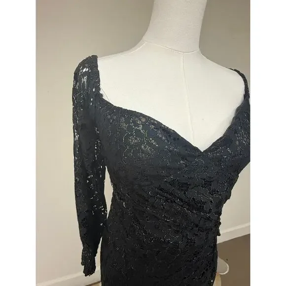 Genavieve The Label Floral Lace Ruffle Accent Long Sleeve Asymmetric Midi DressMSRP: $700Condition: New with Tags.Pit to pit: 16.5 inShoulder to Shoulder: 13.5 inWaist: 18 inHip: 19.5 inLength: 57 inSleeve Length: 20 inBrand: Genavieve the labelColor: BlackV-NeckLong SleeveFloral LaceAsymmetricLayeredZip Back ClosureThis Genavieve The Label Floral Lace Ruffle Accent Long Sleeve Asymmetric Midi Dress exudes romantic elegance with its intricate floral lace detailing and delicate ruffle accents. Featuring long sleeves and an asymmetric hemline, this midi dress offers a graceful silhouette, perfect for both formal events and stylish evening outings.gala, event, prom, wedding, chic, date night, night out, romantic, special events, elegant, modest, feminine, birthday, holiday, y2k, trendy, party, cocktail, lace, maxi