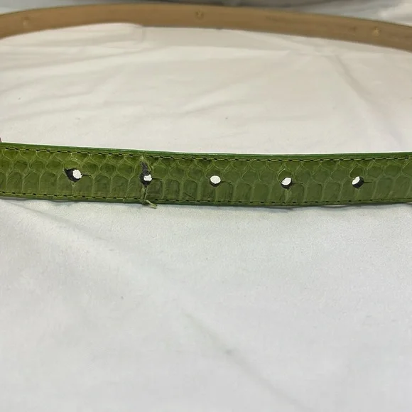 Fabulous 90s Y2K Narrow Lime Green Leather and Genuine Snakeskin Belt. Measures 42” length with buckle. Cute hammered gold metal buckle. Belt is in excellent shape besides one hole which shows its use. Link is in bio to all our stores on linktree!Depop - mystylereinvented- myezvintage AND myezwares (vintage home decor)Reasonable offers welcomed!💌Bundle & save!💰Buying this fabulous piece can bring confidence & lust because you will be continuing the story🪄You are consciously choosing something GOOD for the 🌎. We make an effort to accurately describe our items to the best of our knowledge. If you feel there is a discrepancy let us know, we appreciate your input. 🫶🏻 Pics are part of our description. Please view the ENTIRE listing carefully as we don't offer returns. If you have any questions, please ask us BEFORE purchasing. We're happy to answer you. 😇Located at MyStyle Boutique. Open Mon-Sat 10-5 at 11000 70th Ave. Seminole, FL 33772