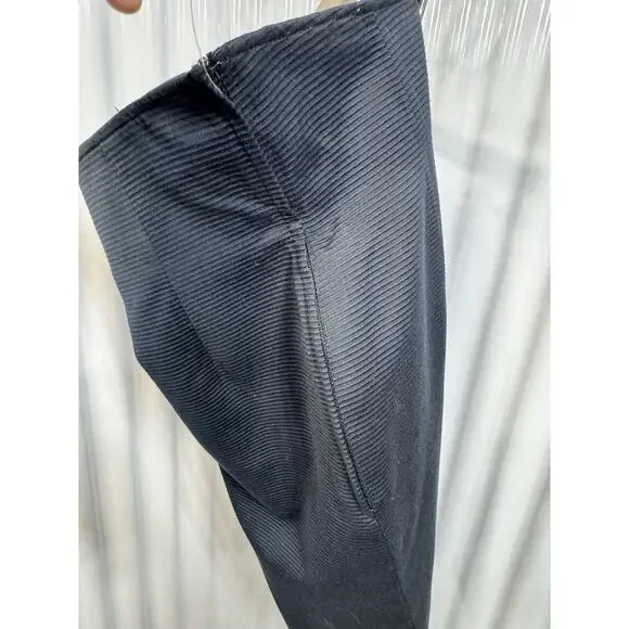 Stunning beautiful black skirt is perfect for any occasion. Made in Italy from high-quality cotton and lana wool, it features a solid pattern with horizontal ribbing and a knit fabric type. The skirt has a zipper closure and accents, and is a straight and pencil style with a knee-length cut.It's a versatile piece that can be worn for casual, formal, or business events, and is suitable for all seasons. The skirt is handmade and comes in size 48/US 12, and is brand new with tags. Its vintage look adds a touch of elegance to your wardrobe, making it a must-have item.