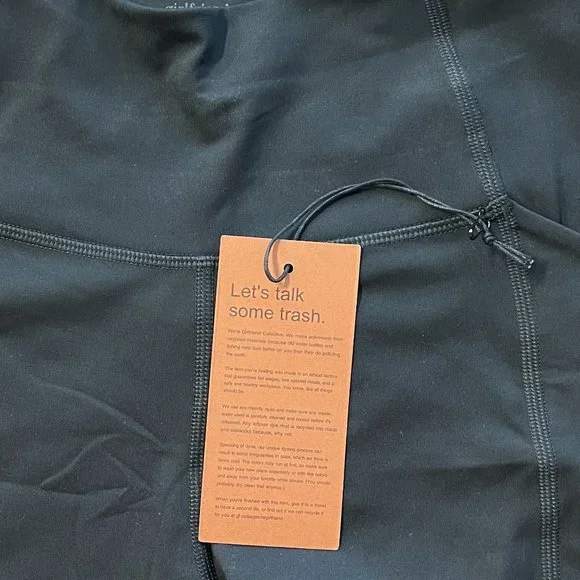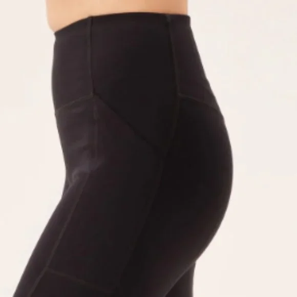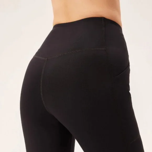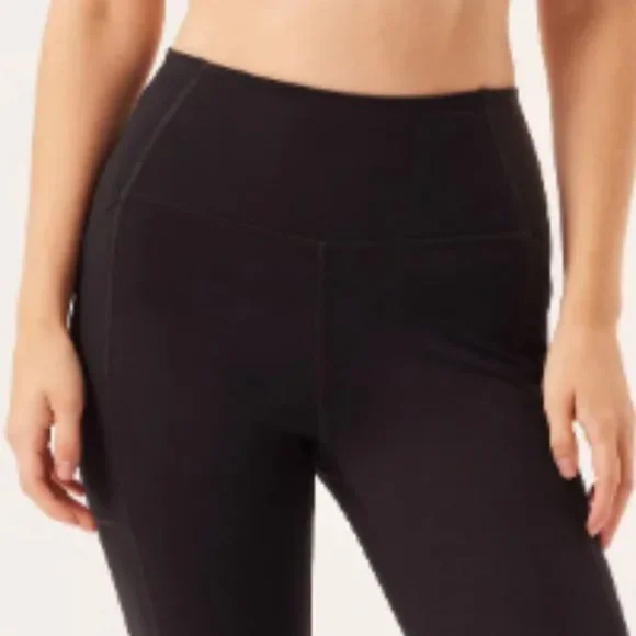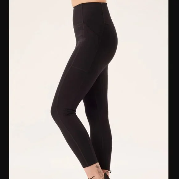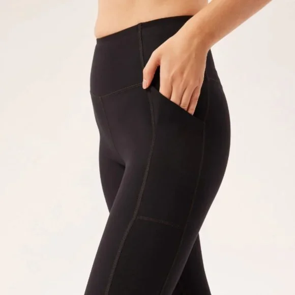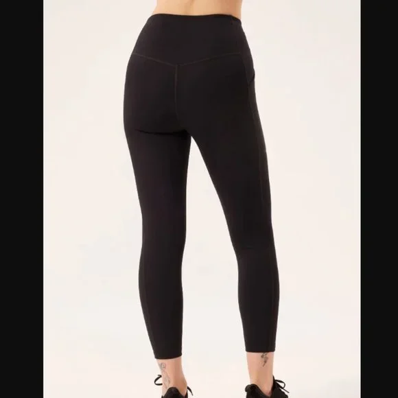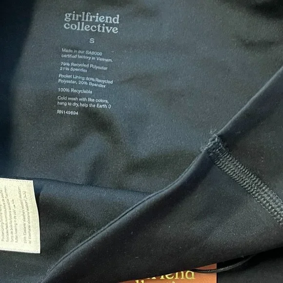 The Compressive Pocket Legging has the same high rise, sturdy construction, and ultra compression as our original legging, but features sleek double side seams and a pocket on each hip for your phone, wallet, keys, vitamins, or whatever else you feel like putting in there. Hey, that's your business. Made from 79% recycled plastic bottles (RPET) and 21% spandexRecyclable with ReGirlfriendDesigned for high-impact workouts Two deep side pockets that fit most smartphonesSmall hidden back pocket for keys or cardsSweat-wicking and sheer-proofSoft yet sturdy construction with four-way stretchTo take care of it, machine wash cold and hang to dry — we recommend using a microfiber filter or filtering wash bag. ;) Please note colors may bleed at first, so always wash with like colors in cold water. 28.5" = Full Length23 3/4" = 7/8True to size with an 11" rise.