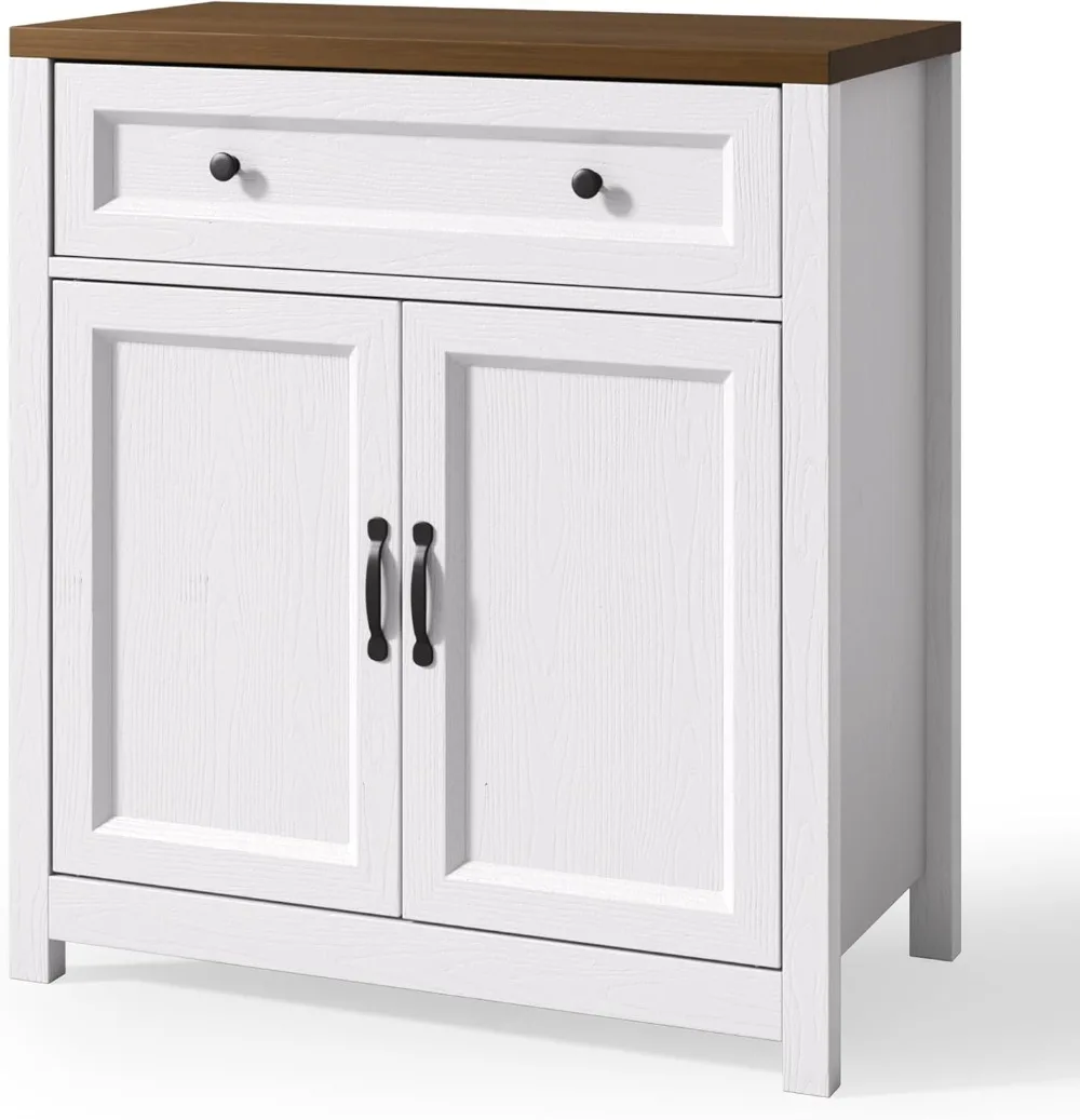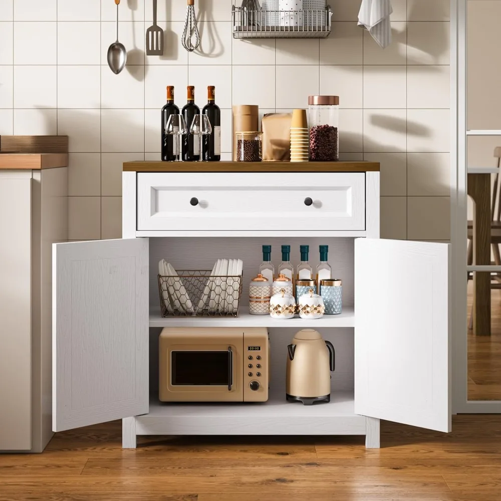 • Ample Storage Space: This kitchen sideboard buffet cabinet features a large drawer and two doors with adjustable shelves for storing coffee beans, spices, and miscellaneous items, while the wide tabletop creates unobstructed access to the microwave, toaster, and coffee maker